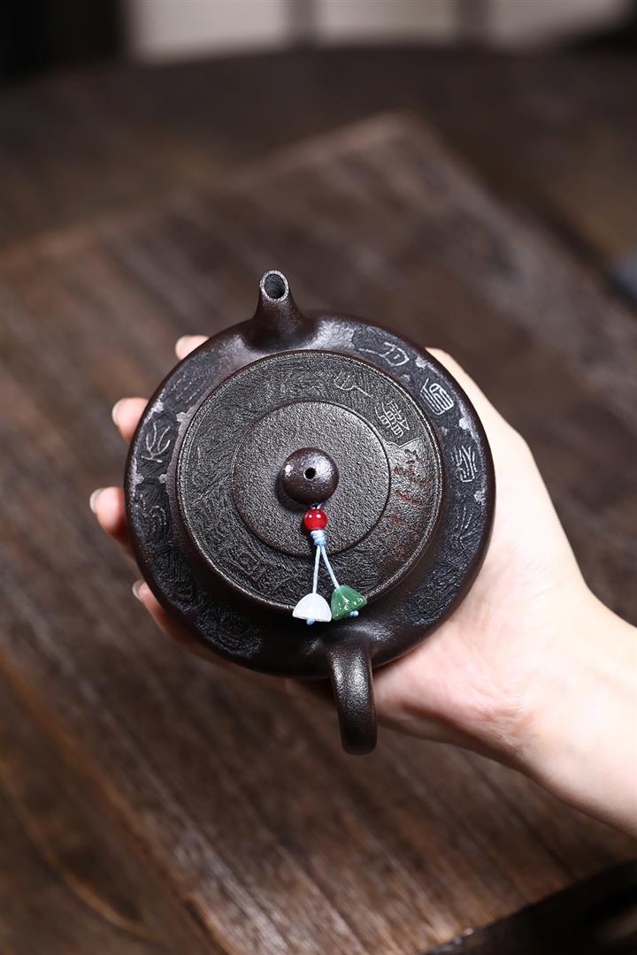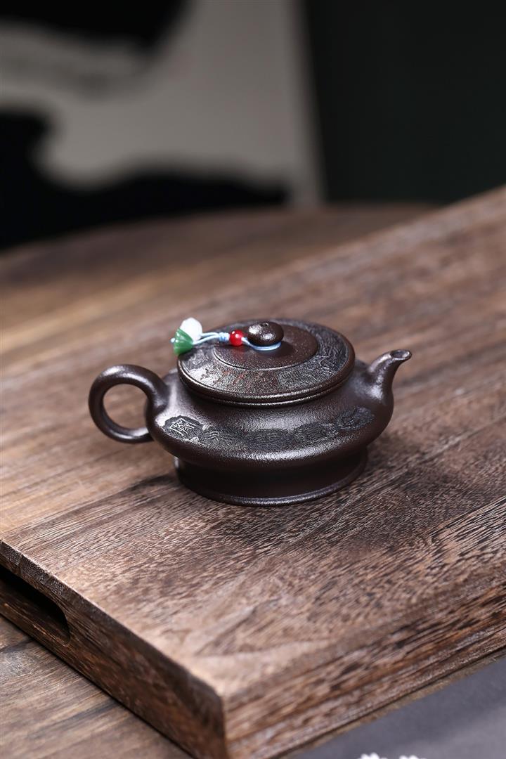 450cc原礦紫泥滿刻大德鐘茶壺POT8290