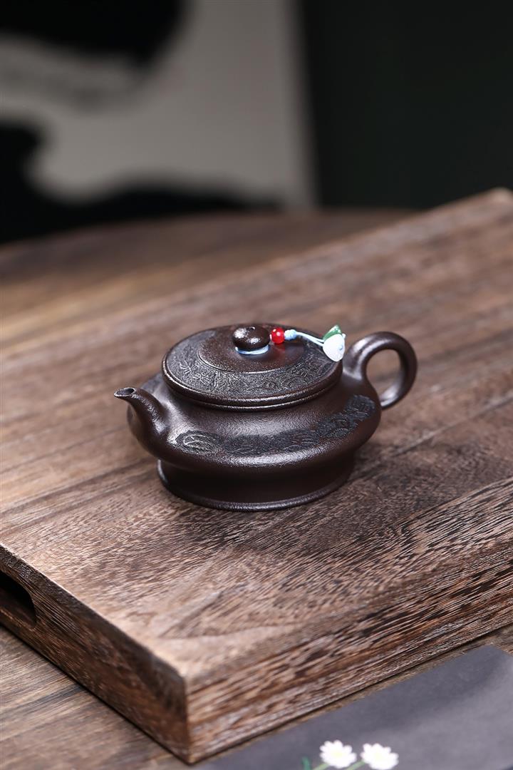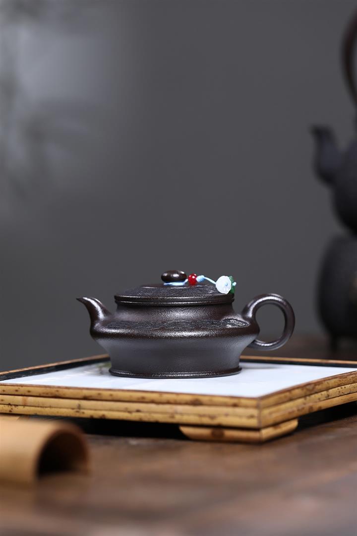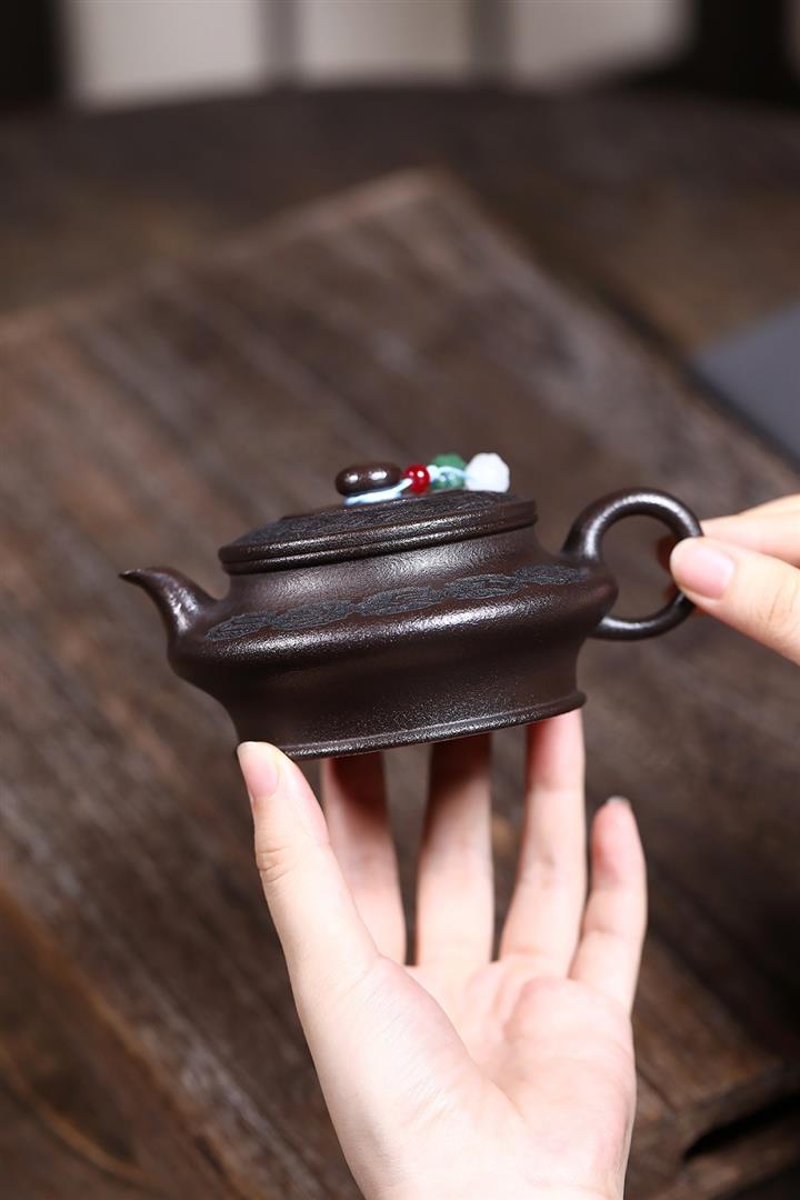 300cc原礦玄鐵黑料報春茶壺POT8295