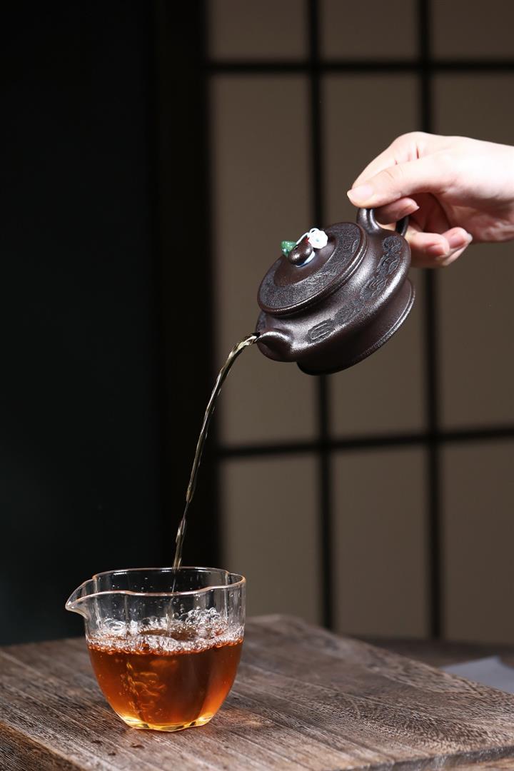 【泥料特點】砂土氣重,似淳實農民,日久使用,漸露鋒芒,養成變化,溫潤莊重。紫砂是壹種雙重氣孔結構的多孔性材質,氣孔微細,密度高。用紫砂壺沏茶,不失原味,且香不渙散,得茶之真香真味。紫砂使用越久,壺身色澤越發光亮照人,氣韻溫雅。紫砂壺長久使用器身會因撫摸擦拭,變得越發溫潤光澤。