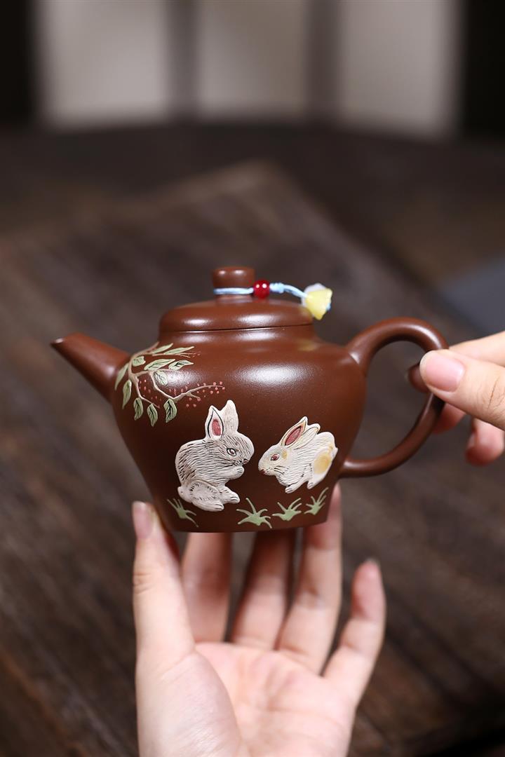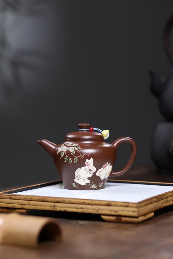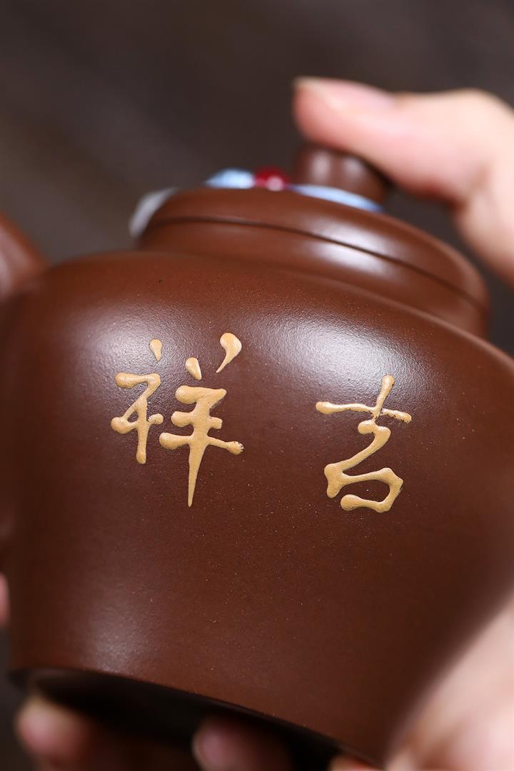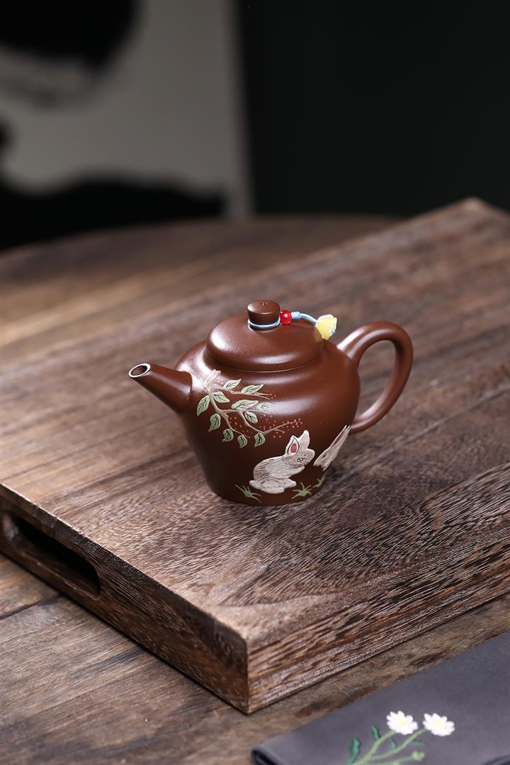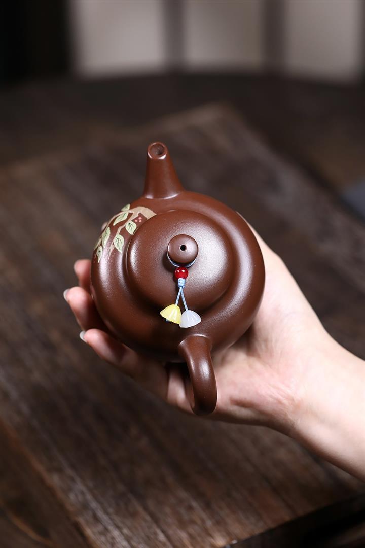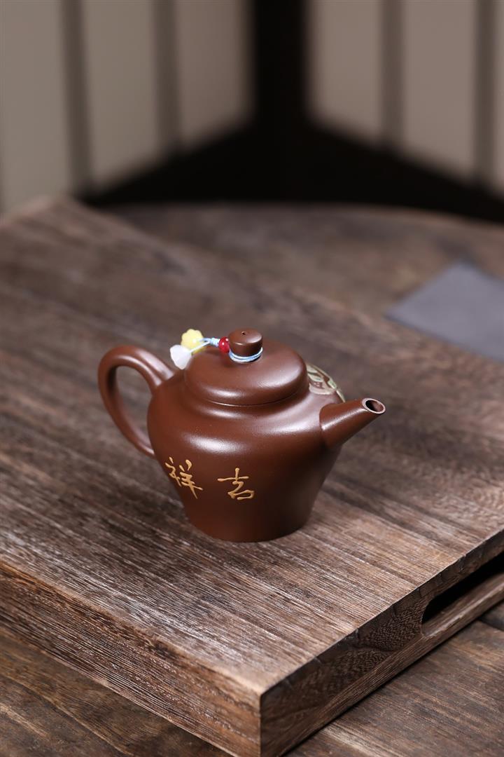 200cc原礦紫泥泥繪多子多福茶壺POT8032