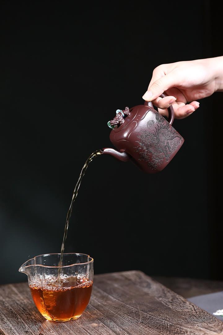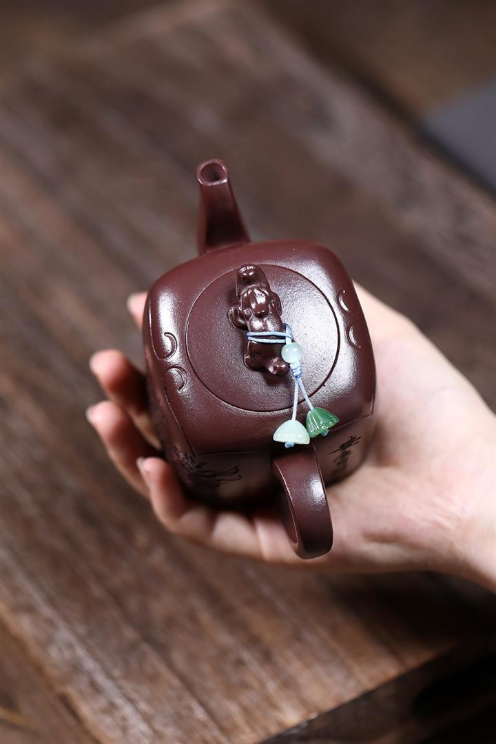 【作品介紹】此款壺形線條流暢,壺把,壺嘴,壺身壹氣呵成栩栩如生,是收藏把玩的好壺,泥料色澤古樸典雅,日久使用,漸露鋒芒,養成變化快,溫潤莊重,用其泡茶,使用的年代久,壺身就溫潤,泡出來的茶湯也就醇郁芳馨。