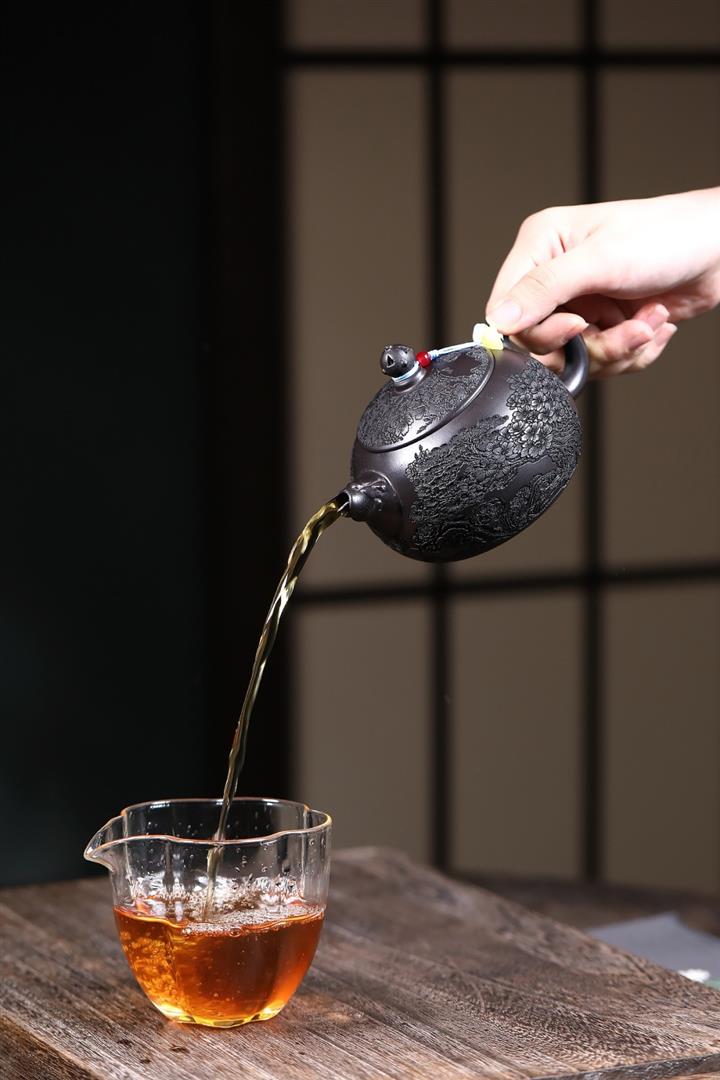 【作品介紹】此款壺形線條流暢,壺把,壺嘴,壺身壹氣呵成栩栩如生,是收藏把玩的好壺,泥料色澤古樸典雅,日久使用,漸露鋒芒,養成變化快,溫潤莊重,用其泡茶,使用的年代久,壺身就溫潤,泡出來的茶湯也就醇郁芳馨。