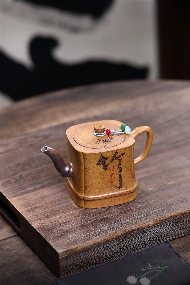 250cc原礦龍骨金砂柴燒勁竹四方茶壺POT8045