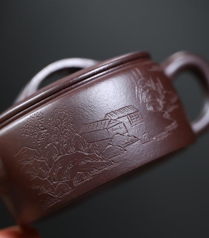 200cc原礦紫泥刻繪梅香漢瓦茶壺POT8049