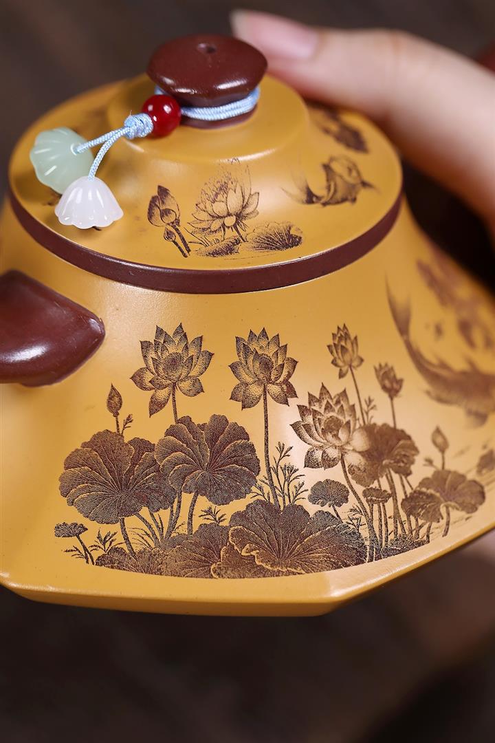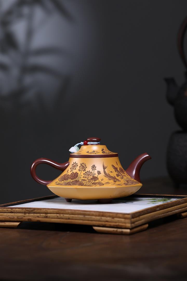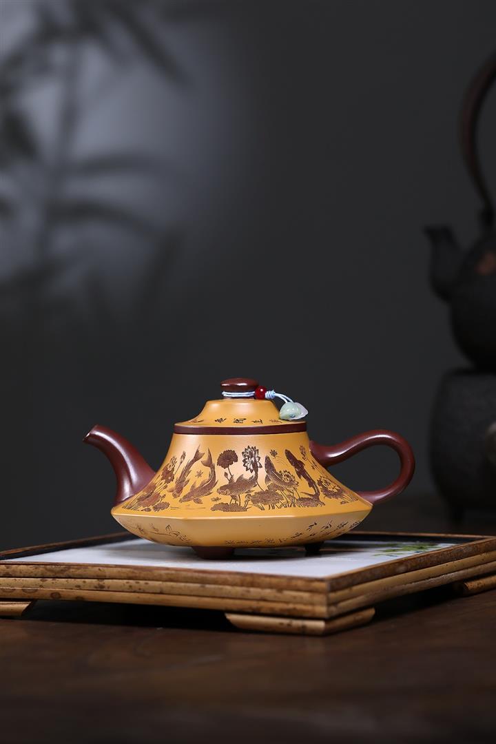 原礦紫泥梅花刻繪珠圓玉潤茶壺POT7397