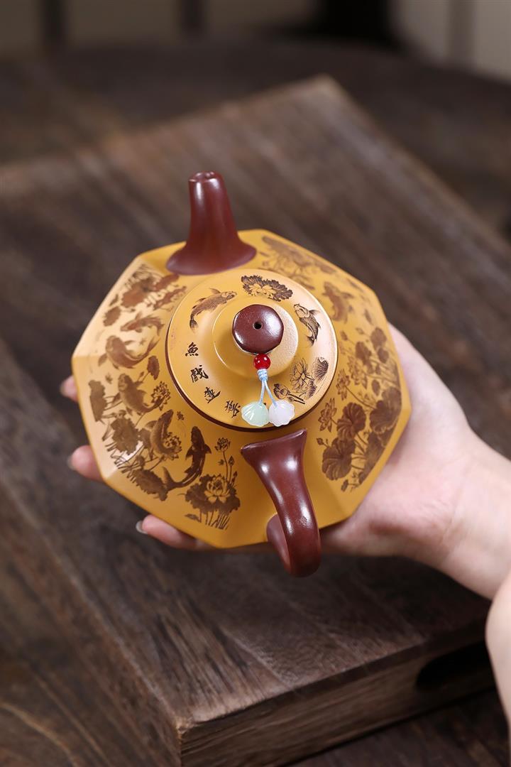 【作品介紹】此款壺形線條流暢,壺把,壺嘴,壺身壹氣呵成栩栩如生,是收藏把玩的好壺,泥料色澤古樸典雅,日久使用,漸露鋒芒,養成變化快,溫潤莊重,用其泡茶,使用的年代久,壺身就溫潤,泡出來的茶湯也就醇郁芳馨。