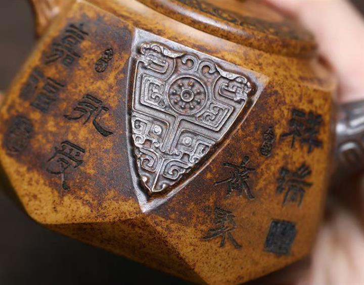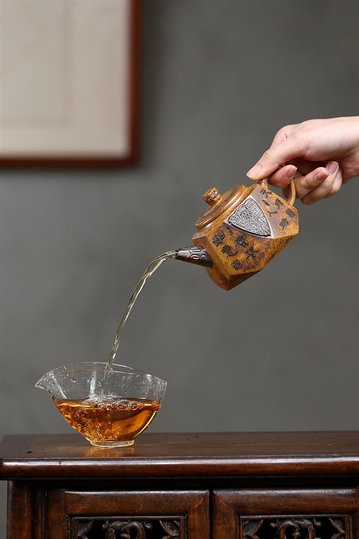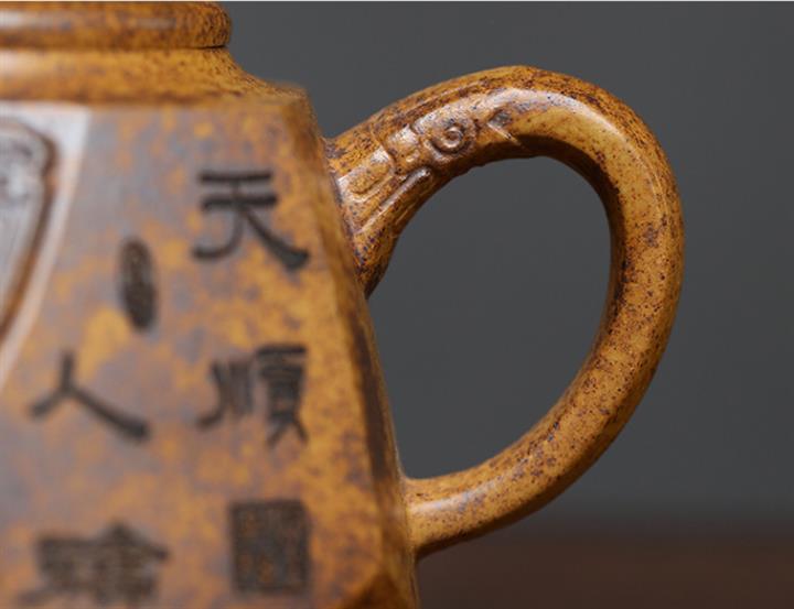 【泥料特點】砂土氣重,似淳實農民,日久使用,漸露鋒芒,養成變化,溫潤莊重。紫砂是壹種雙重氣孔結構的多孔性材質,氣孔微細,密度高。用紫砂壺沏茶,不失原味,且香不渙散,得茶之真香真味。紫砂使用越久,壺身色澤越發光亮照人,氣韻溫雅。紫砂壺長久使用器身會因撫摸擦拭,變得越發溫潤光澤。