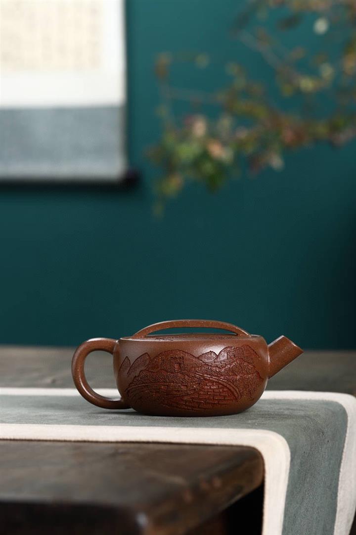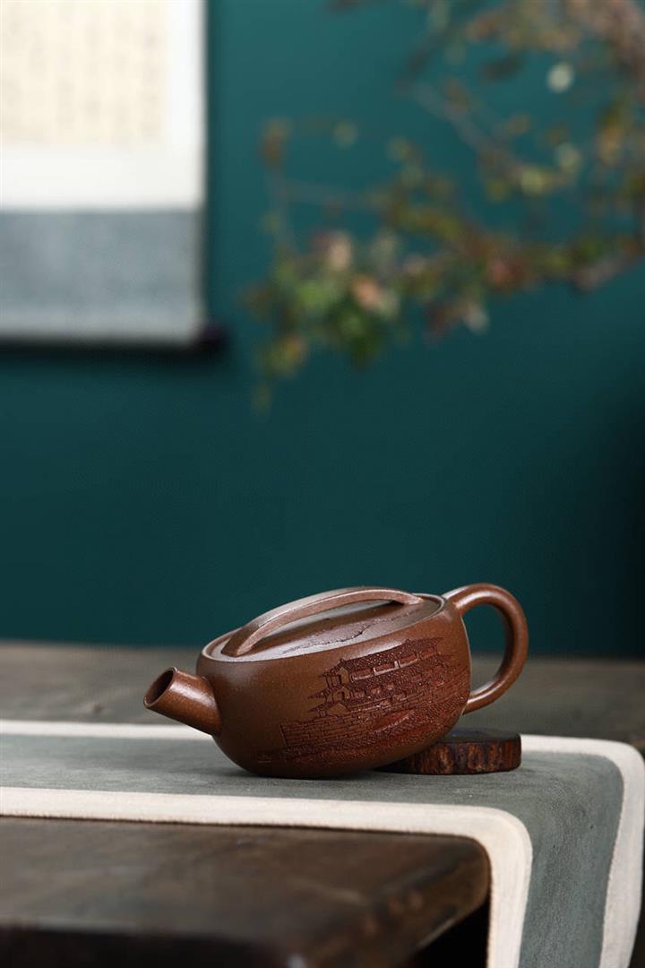 200cc原礦段泥字畫壹片瓦茶壺POT8126
