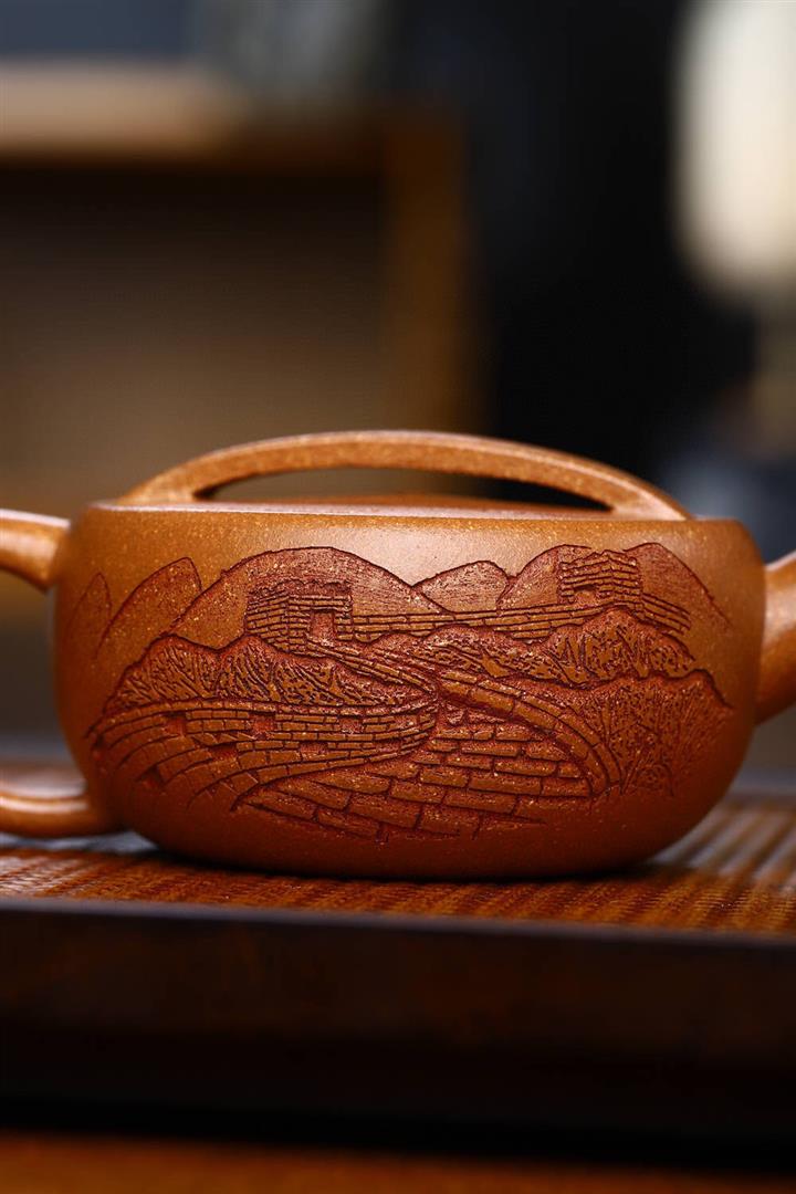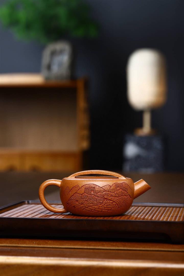 【作品介紹】此款壺形線條流暢,壺把,壺嘴,壺身壹氣呵成栩栩如生,是收藏把玩的好壺,泥料色澤古樸典雅,日久使用,漸露鋒芒,養成變化快,溫潤莊重,用其泡茶,使用的年代久,壺身就溫潤,泡出來的茶湯也就醇郁芳馨。