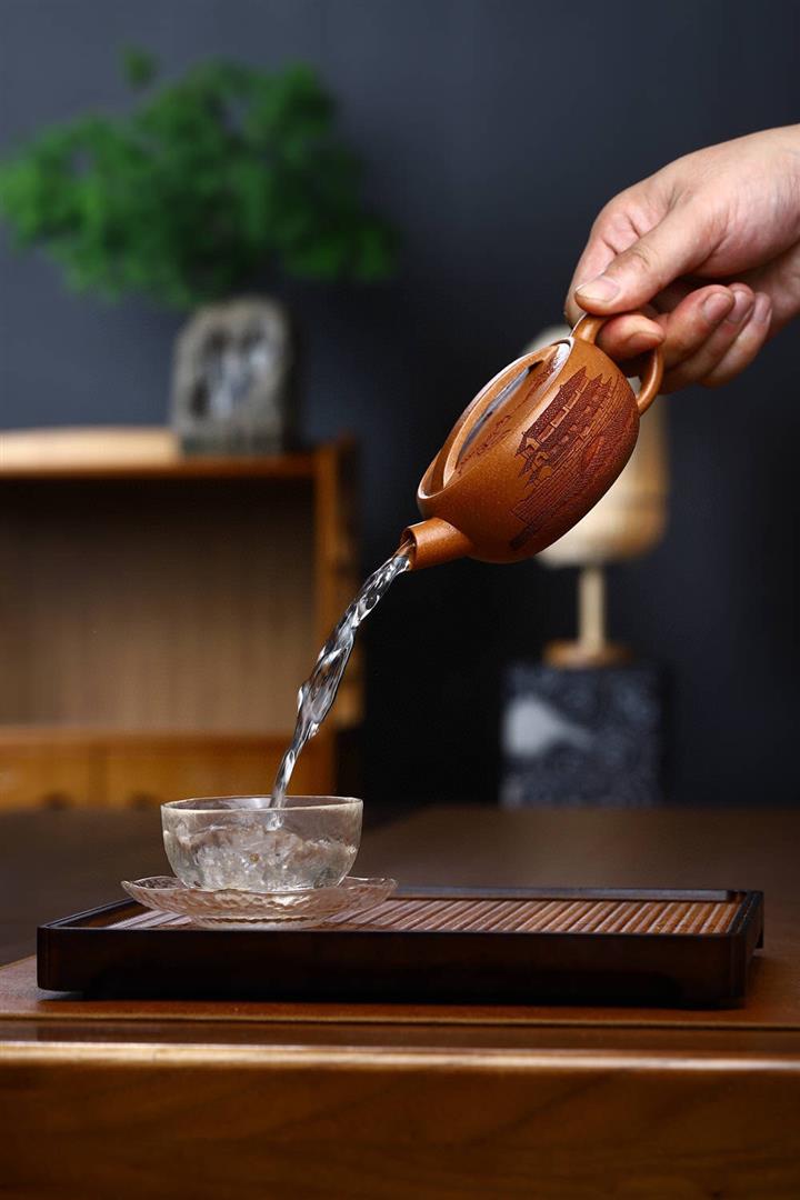 【泥料特點】砂土氣重,似淳實農民,日久使用,漸露鋒芒,養成變化,溫潤莊重。紫砂是壹種雙重氣孔結構的多孔性材質,氣孔微細,密度高。用紫砂壺沏茶,不失原味,且香不渙散,得茶之真香真味。紫砂使用越久,壺身色澤越發光亮照人,氣韻溫雅。紫砂壺長久使用器身會因撫摸擦拭,變得越發溫潤光澤。