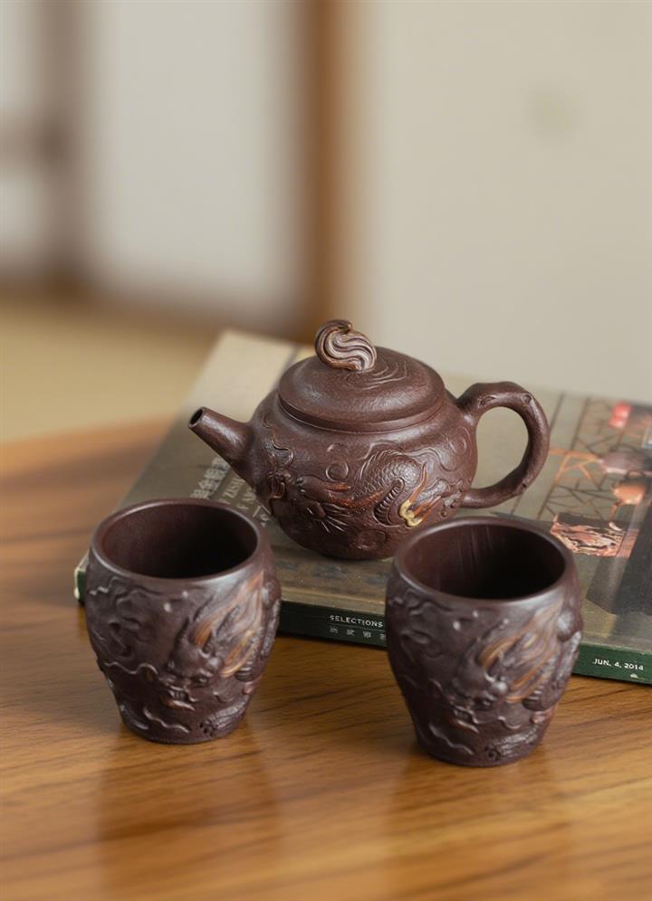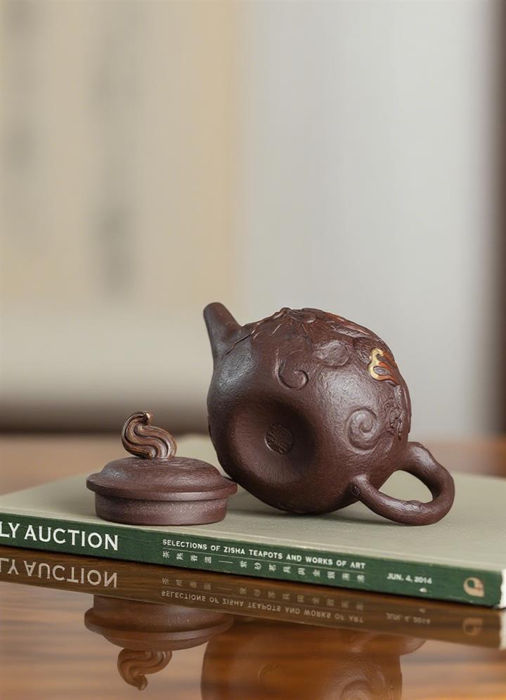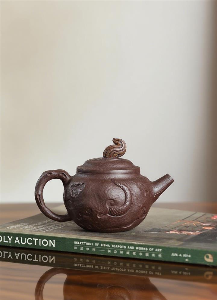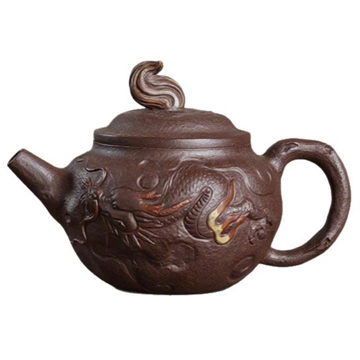 250cc原礦老紫泥浮雕祥龍戲珠茶壺POT8129