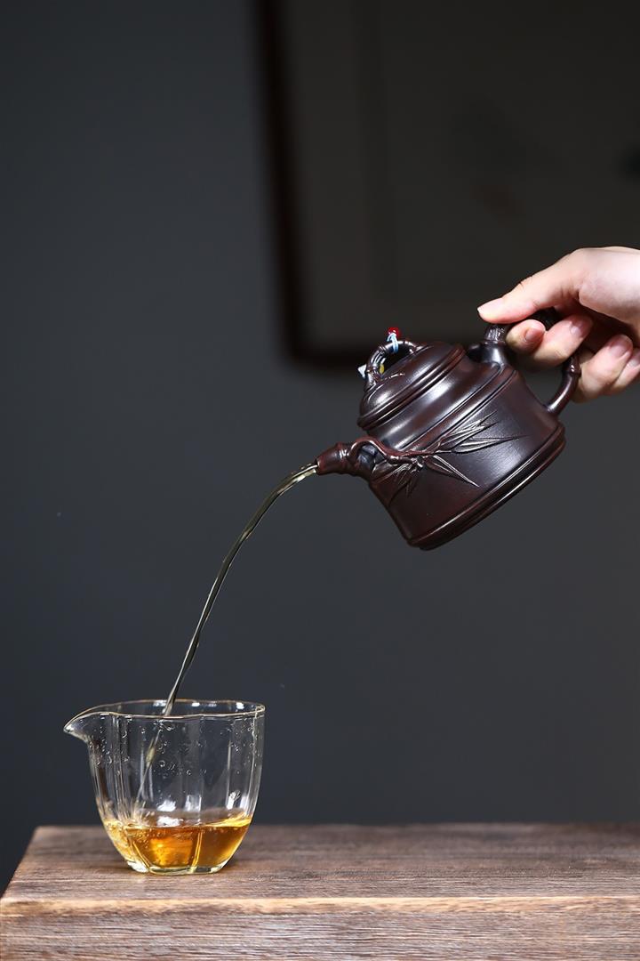 【作品介紹】此款壺形線條流暢,壺把,壺嘴,壺身壹氣呵成栩栩如生,是收藏把玩的好壺,泥料色澤古樸典雅,日久使用,漸露鋒芒,養成變化快,溫潤莊重,用其泡茶,使用的年代久,壺身就溫潤,泡出來的茶湯也就醇郁芳馨。