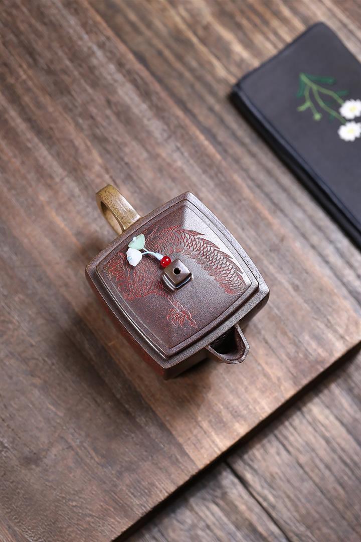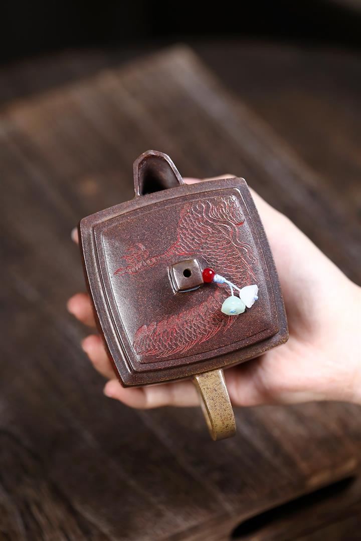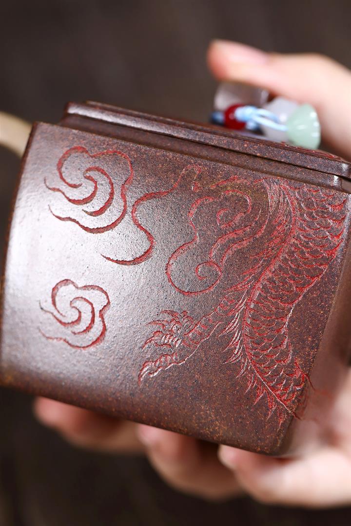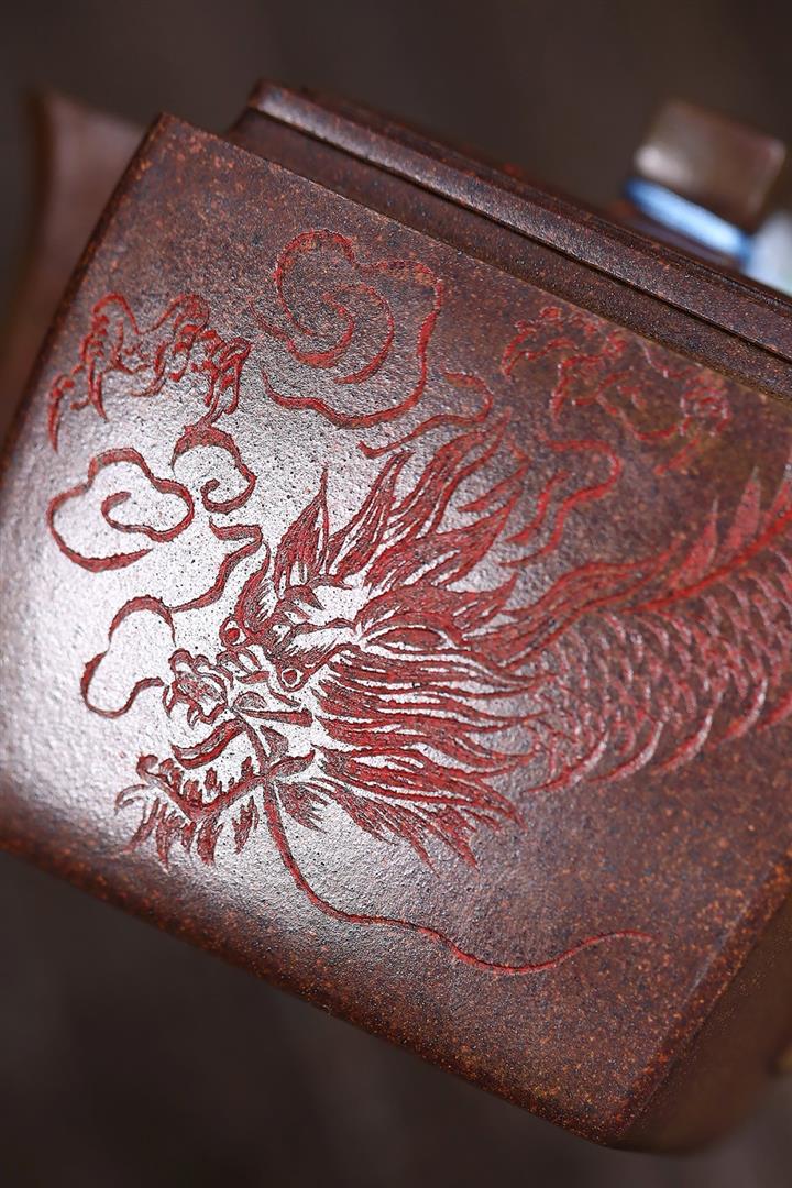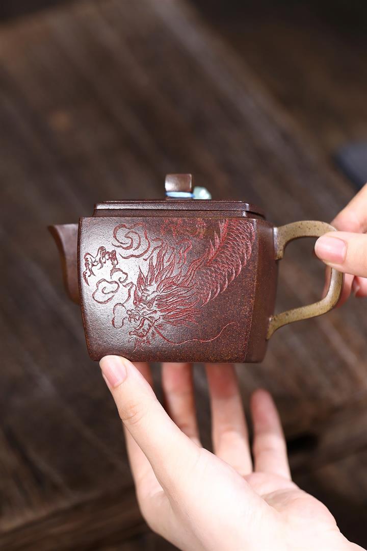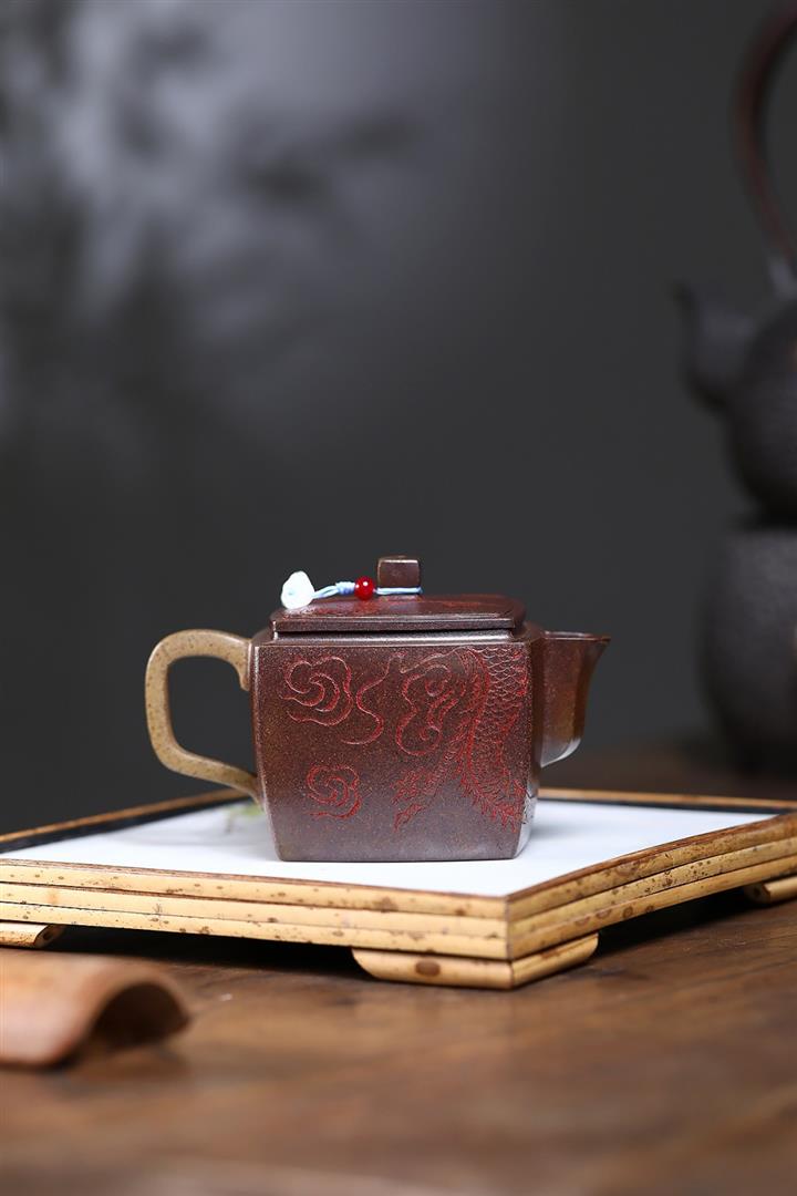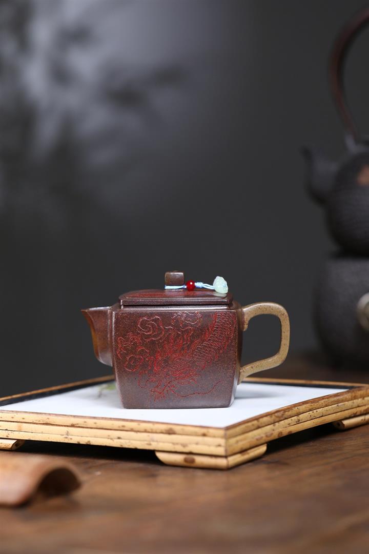 300cc原礦柴燒沈香泥雲龍四方壺POT8135