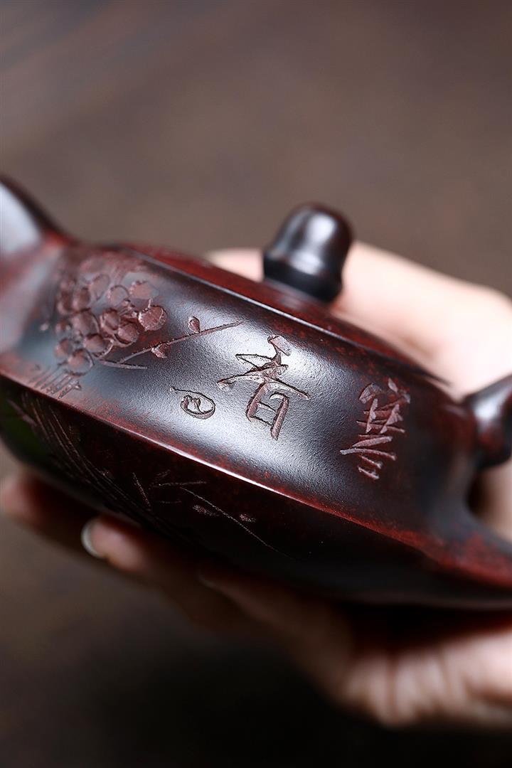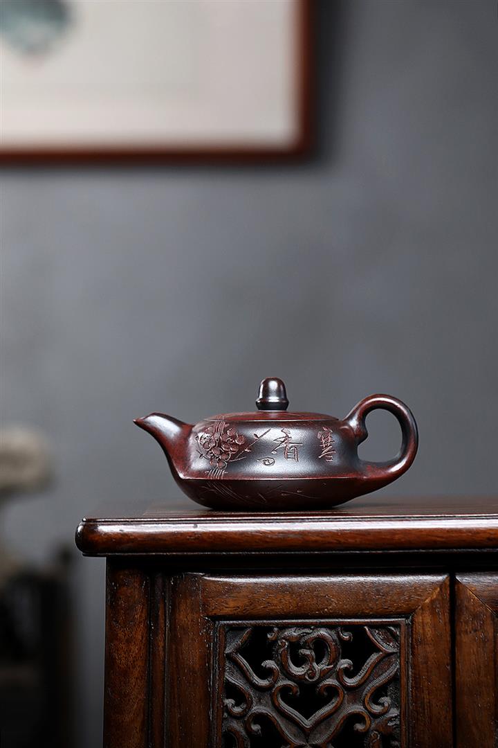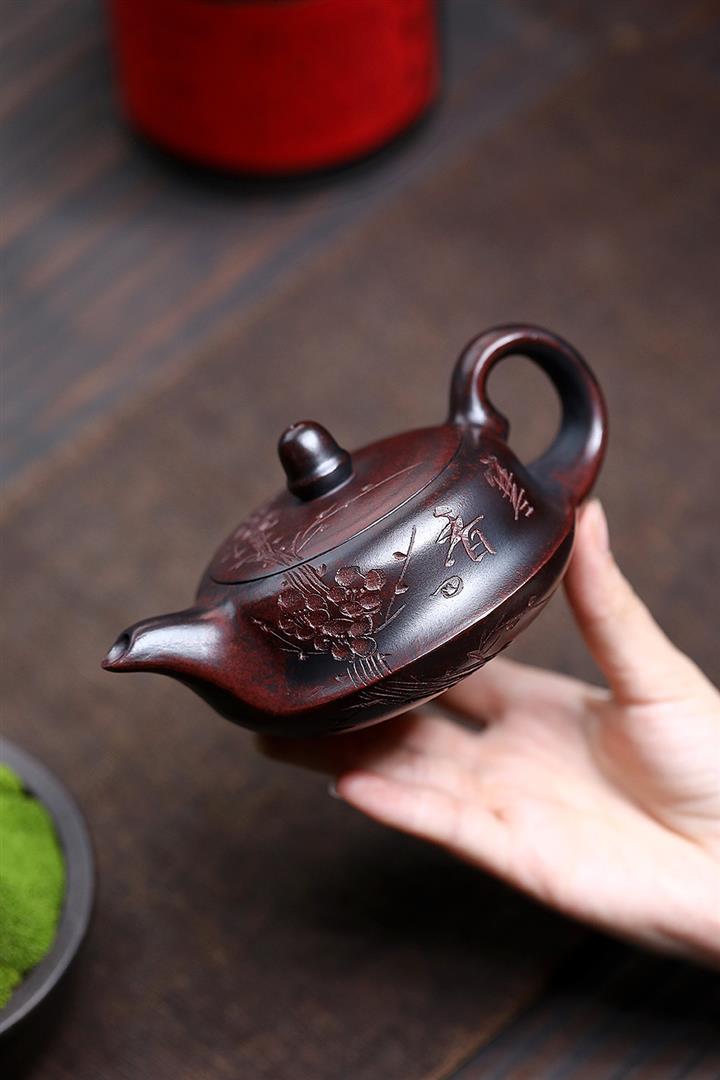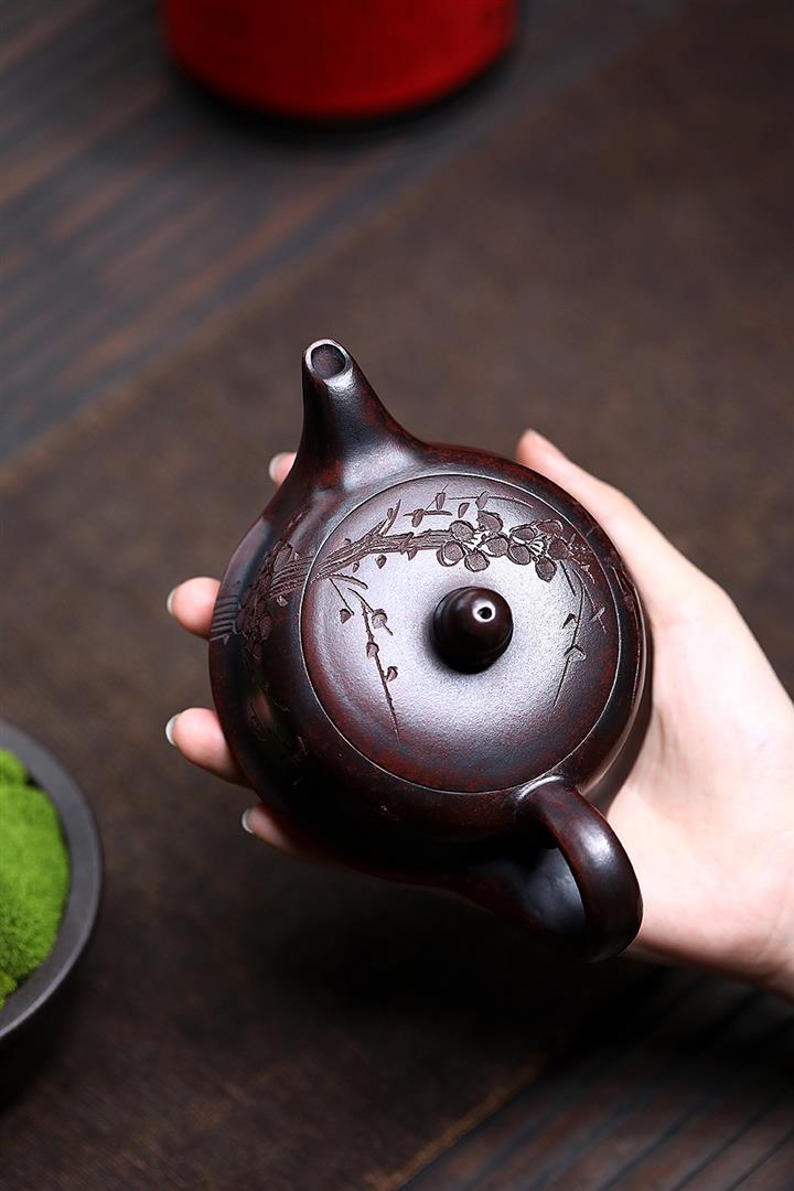 【作品介紹】此款壺形線條流暢,壺把,壺嘴,壺身壹氣呵成栩栩如生,是收藏把玩的好壺,泥料色澤古樸典雅,日久使用,漸露鋒芒,養成變化快,溫潤莊重,用其泡茶,使用的年代久,壺身就溫潤,泡出來的茶湯也就醇郁芳馨。