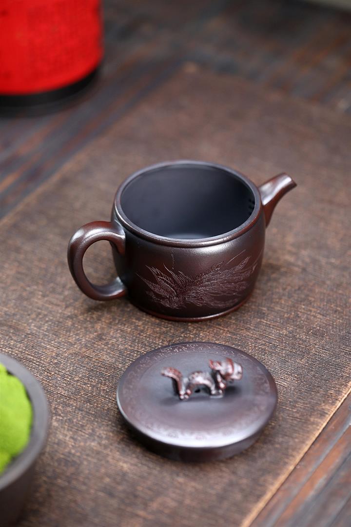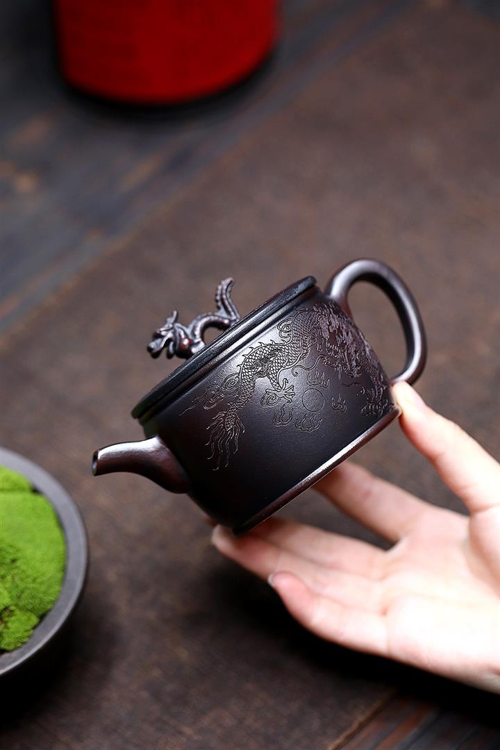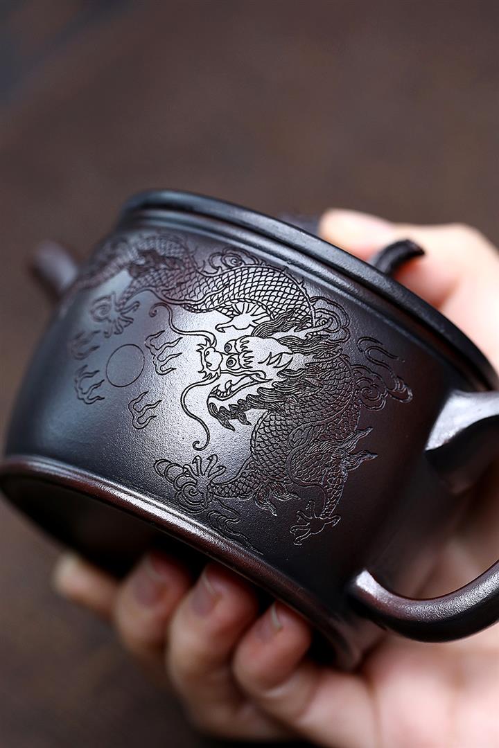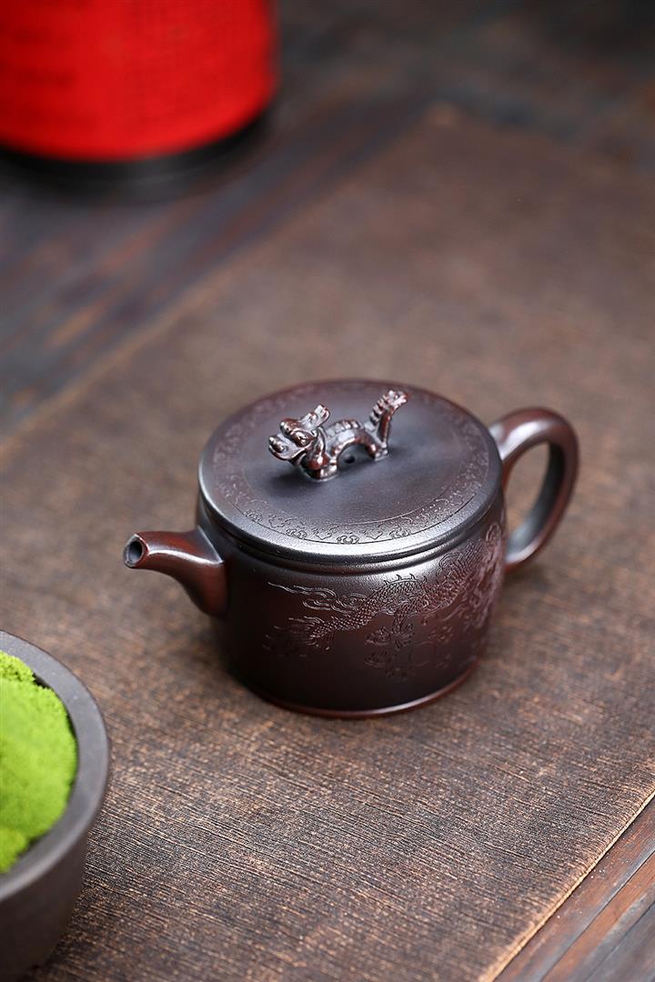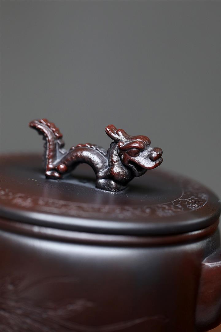 200cc原礦古紅泥遊龍戲鳳漢瓦茶壺POT8137