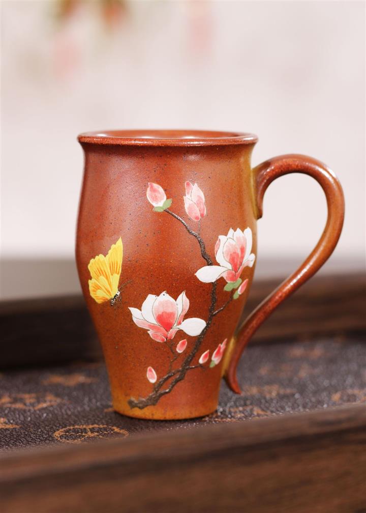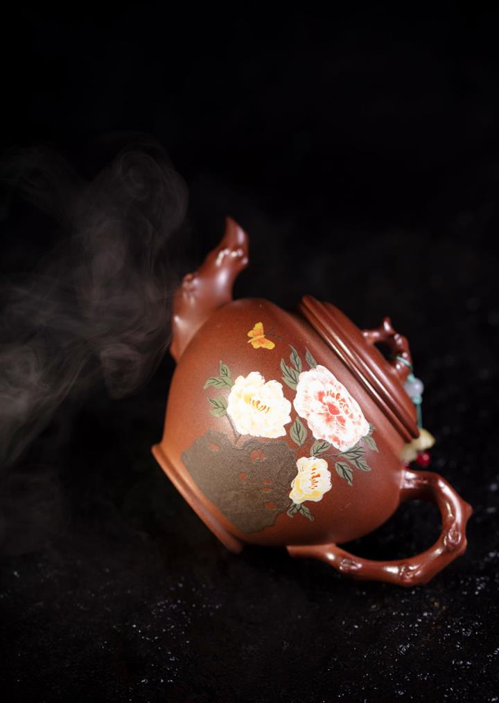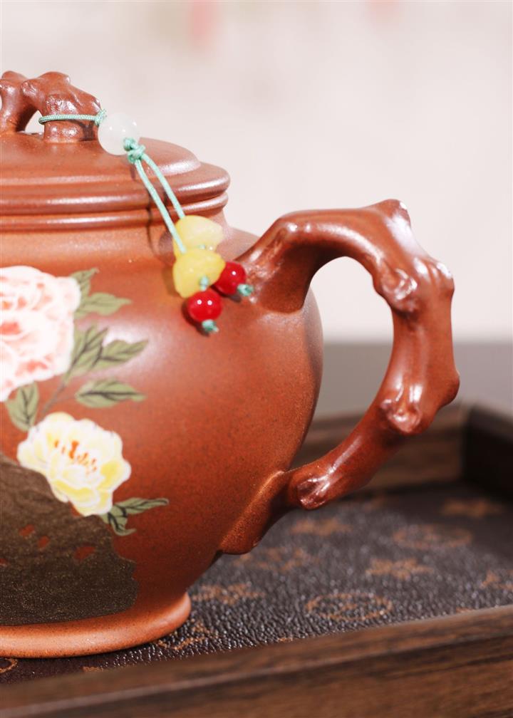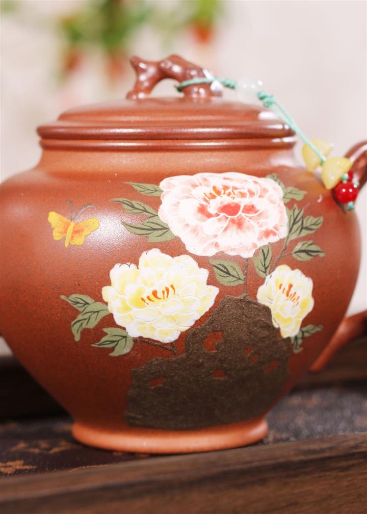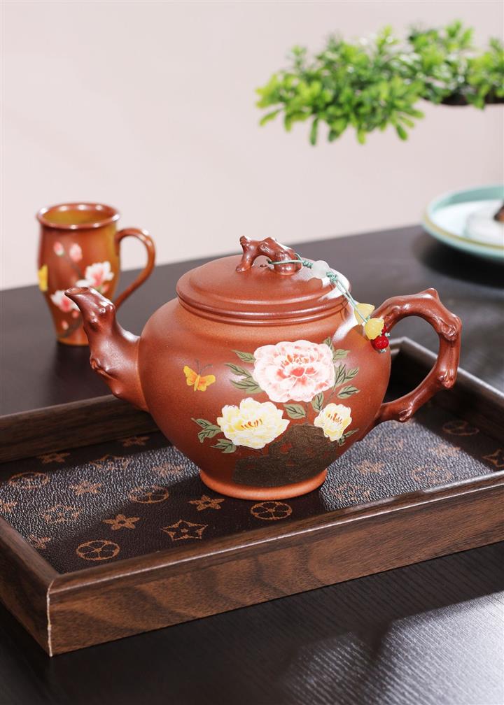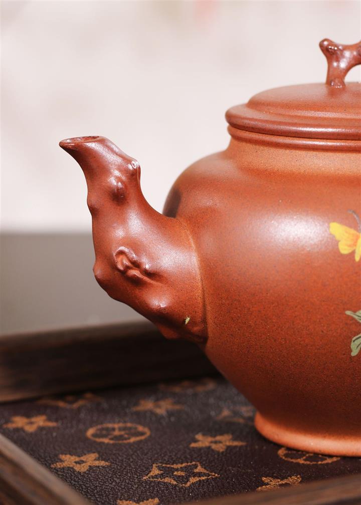 【泥料特點】砂土氣重,似淳實農民,日久使用,漸露鋒芒,養成變化,溫潤莊重。紫砂是壹種雙重氣孔結構的多孔性材質,氣孔微細,密度高。用紫砂壺沏茶,不失原味,且香不渙散,得茶之真香真味。紫砂使用越久,壺身色澤越發光亮照人,氣韻溫雅。紫砂壺長久使用器身會因撫摸擦拭,變得越發溫潤光澤。