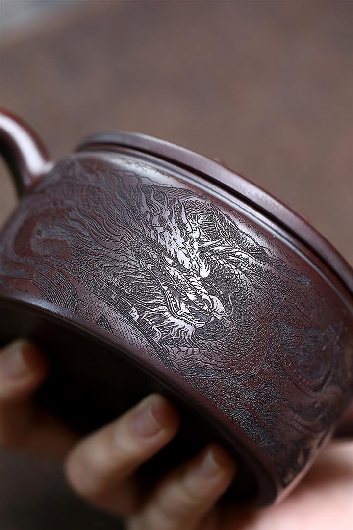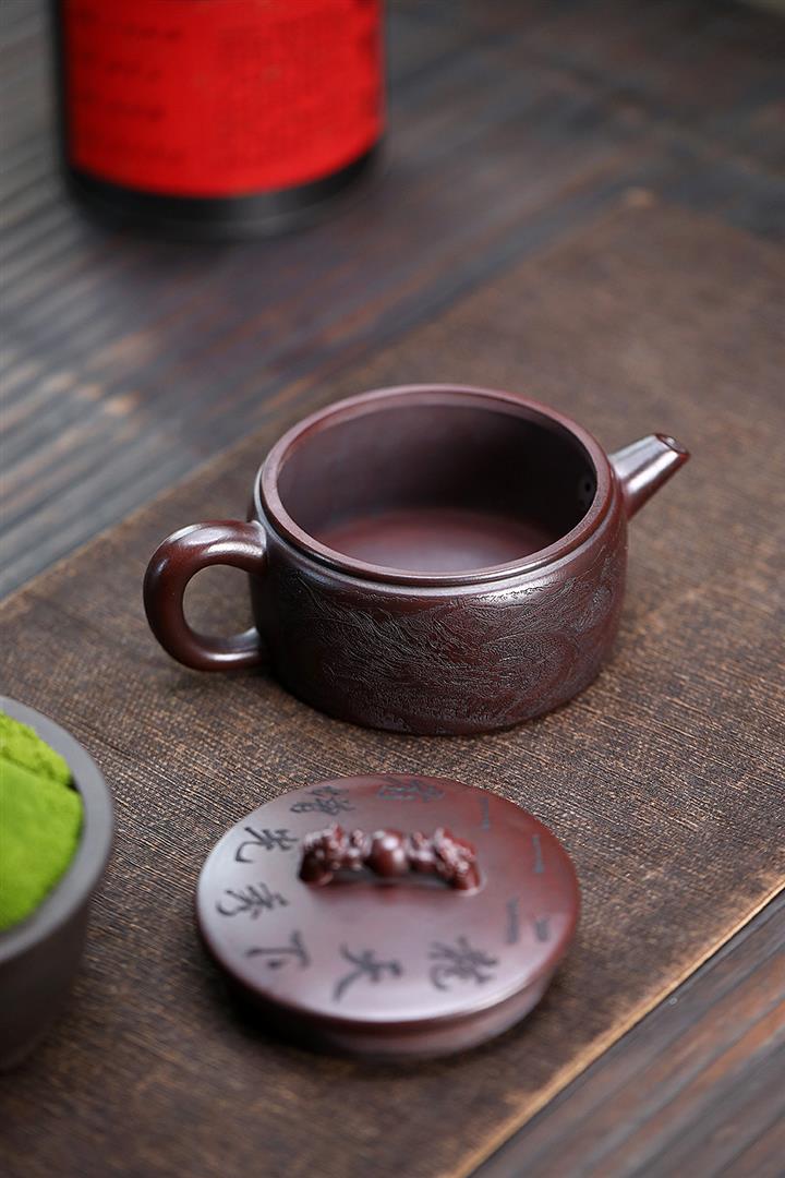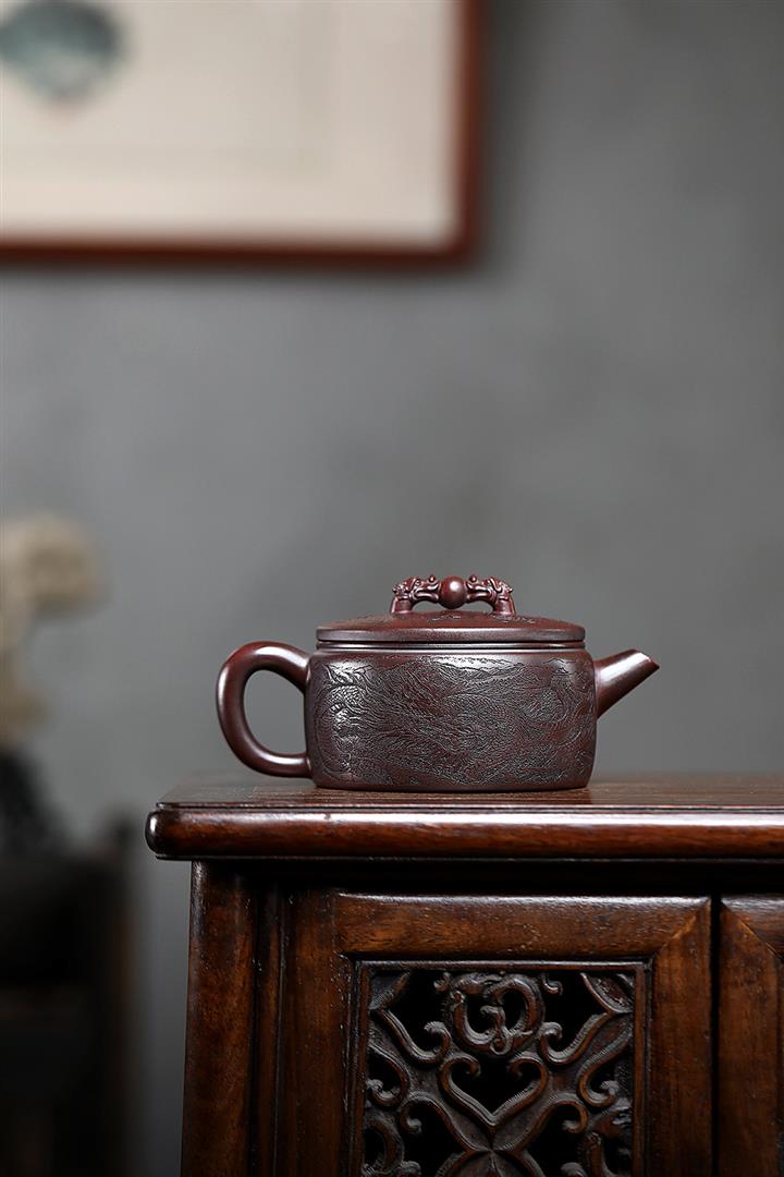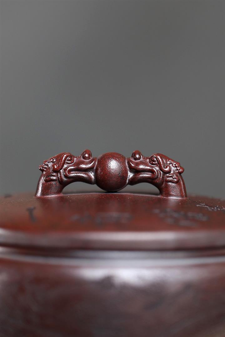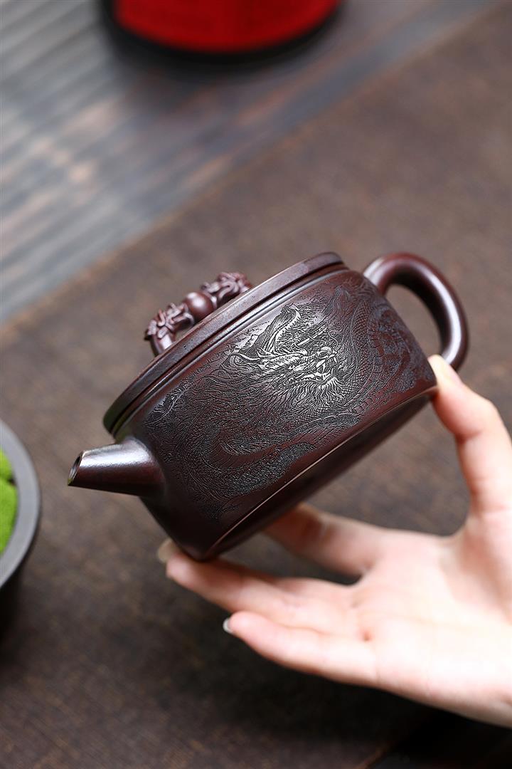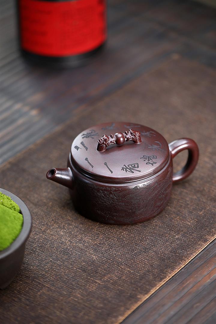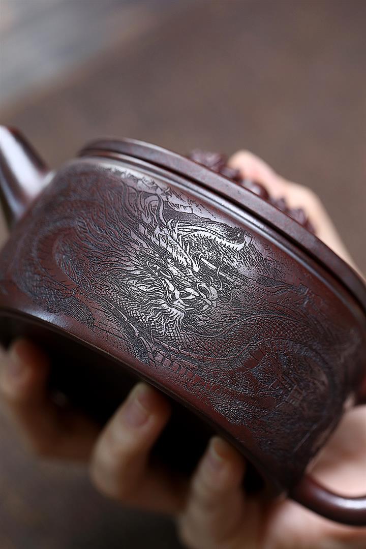 250cc原礦鐵血紅砂雙龍戲珠漢瓦茶壺POT8148