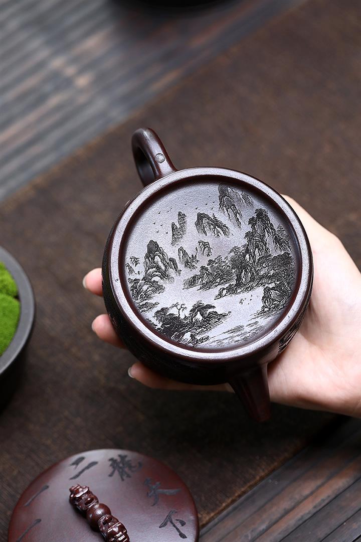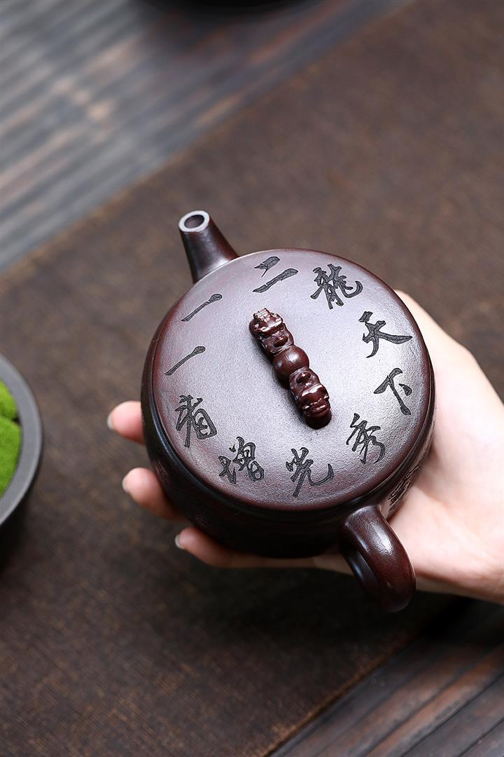 【作品介紹】此款壺形線條流暢,壺把,壺嘴,壺身壹氣呵成栩栩如生,是收藏把玩的好壺,泥料色澤古樸典雅,日久使用,漸露鋒芒,養成變化快,溫潤莊重,用其泡茶,使用的年代久,壺身就溫潤,泡出來的茶湯也就醇郁芳馨。