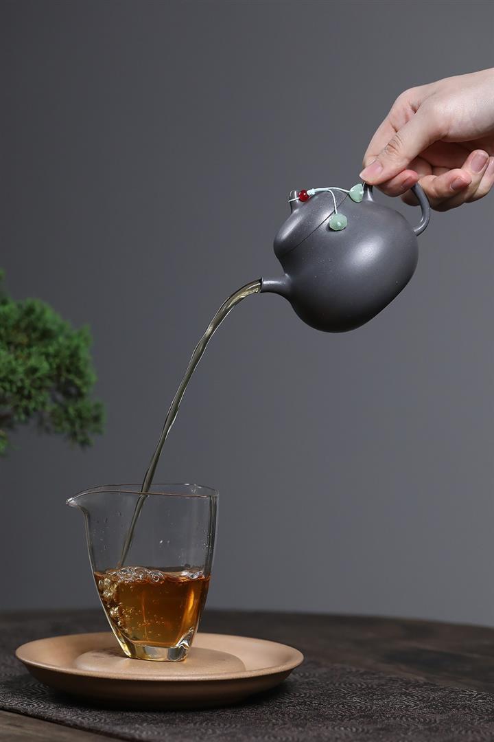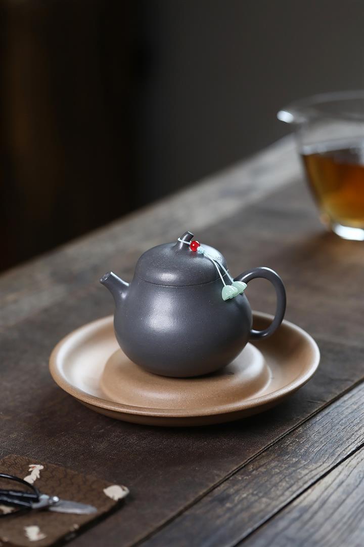 【泥料特點】砂土氣重,似淳實農民,日久使用,漸露鋒芒,養成變化,溫潤莊重。紫砂是壹種雙重氣孔結構的多孔性材質,氣孔微細,密度高。用紫砂壺沏茶,不失原味,且香不渙散,得茶之真香真味。紫砂使用越久,壺身色澤越發光亮照人,氣韻溫雅。紫砂壺長久使用器身會因撫摸擦拭,變得越發溫潤光澤。