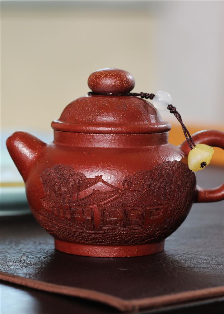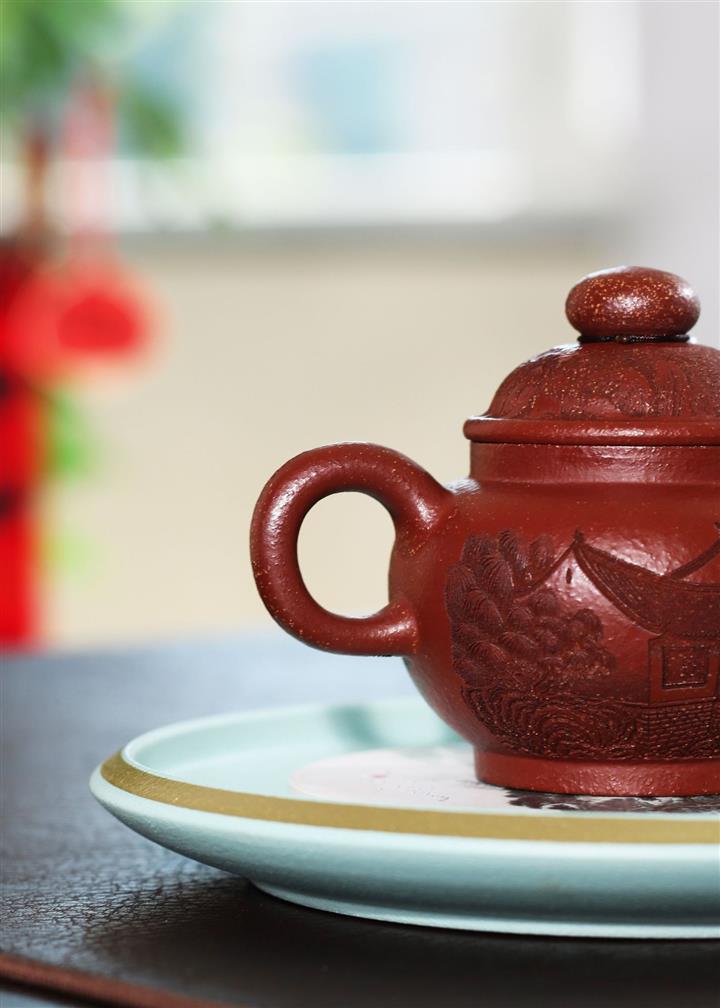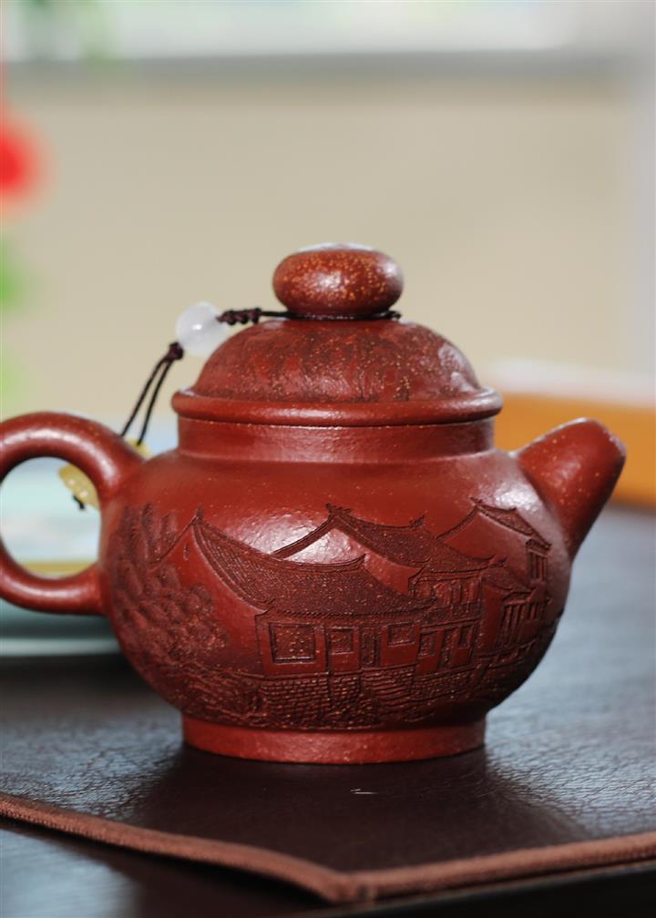 【泥料特點】砂土氣重,似淳實農民,日久使用,漸露鋒芒,養成變化,溫潤莊重。紫砂是壹種雙重氣孔結構的多孔性材質,氣孔微細,密度高。用紫砂壺沏茶,不失原味,且香不渙散,得茶之真香真味。紫砂使用越久,壺身色澤越發光亮照人,氣韻溫雅。紫砂壺長久使用器身會因撫摸擦拭,變得越發溫潤光澤。