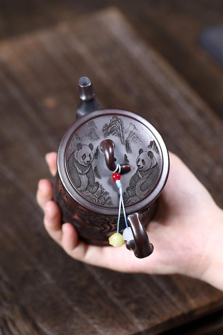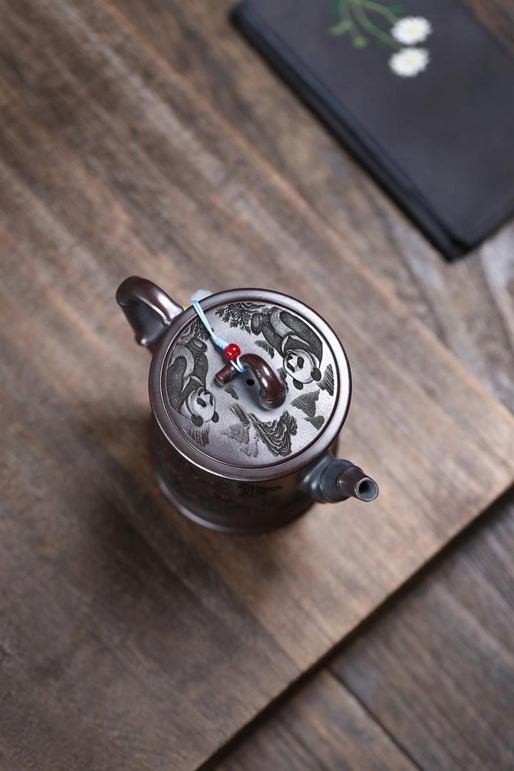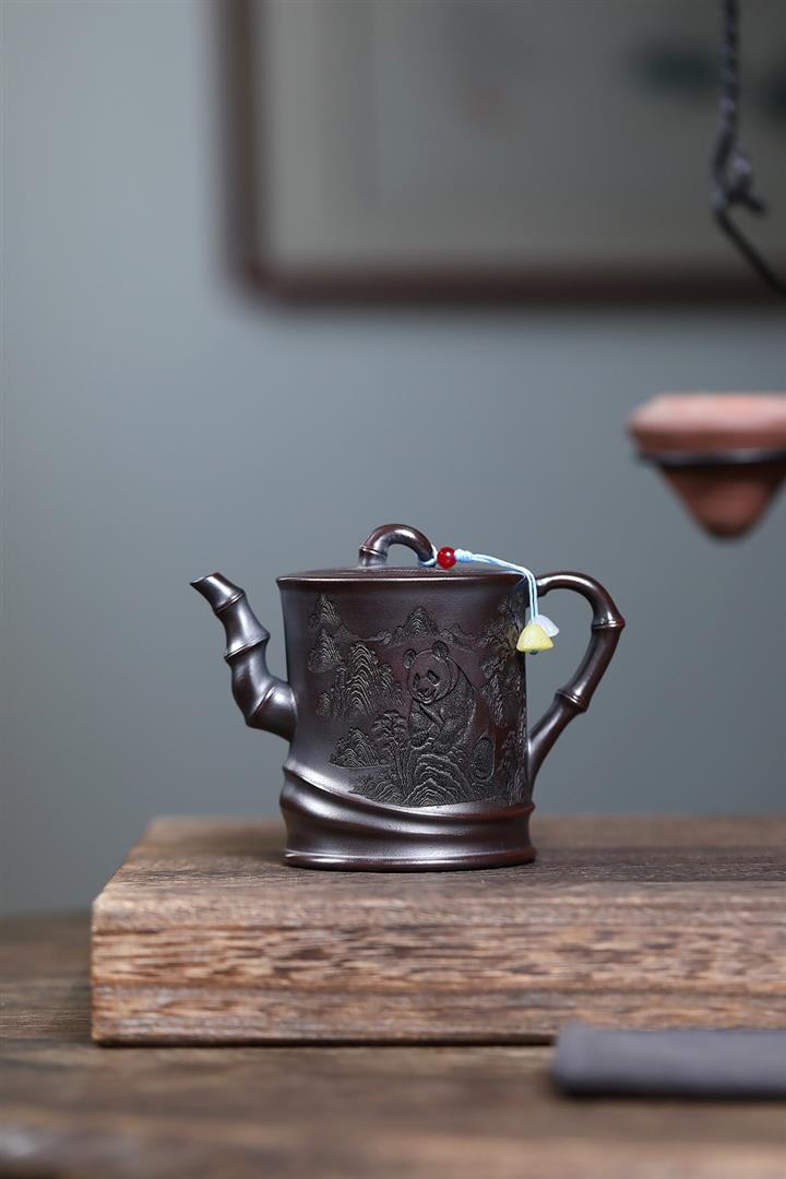 260cc原礦古烏泥滿刻竹影熊韻茶壺POT8181