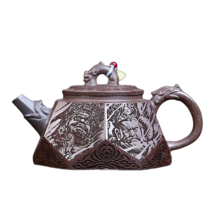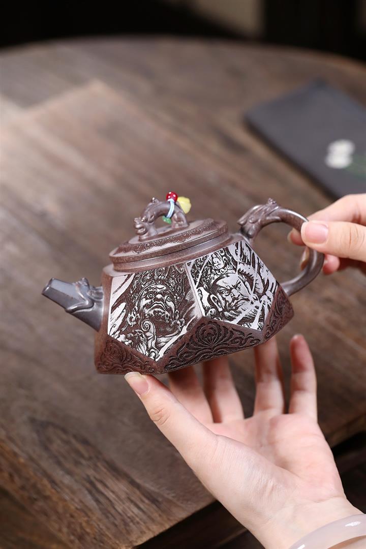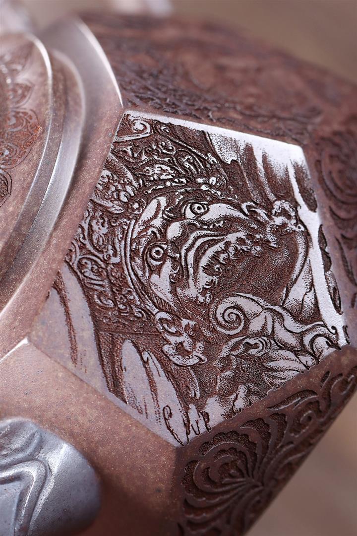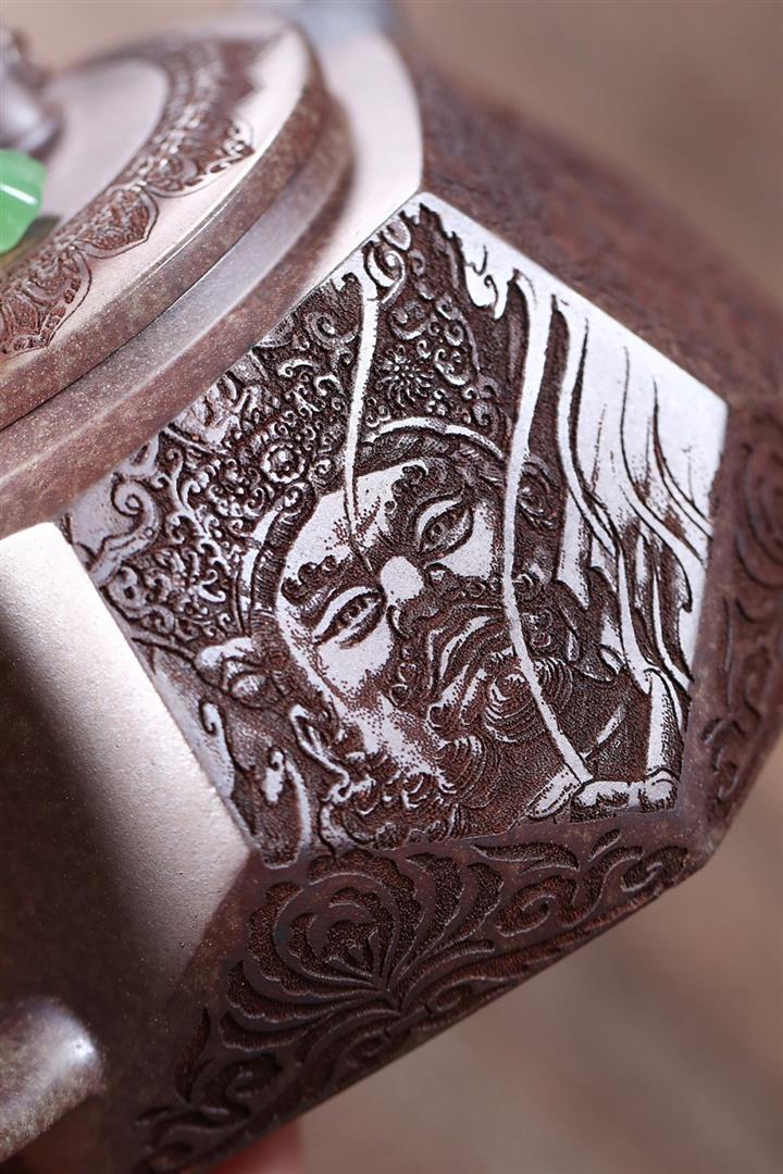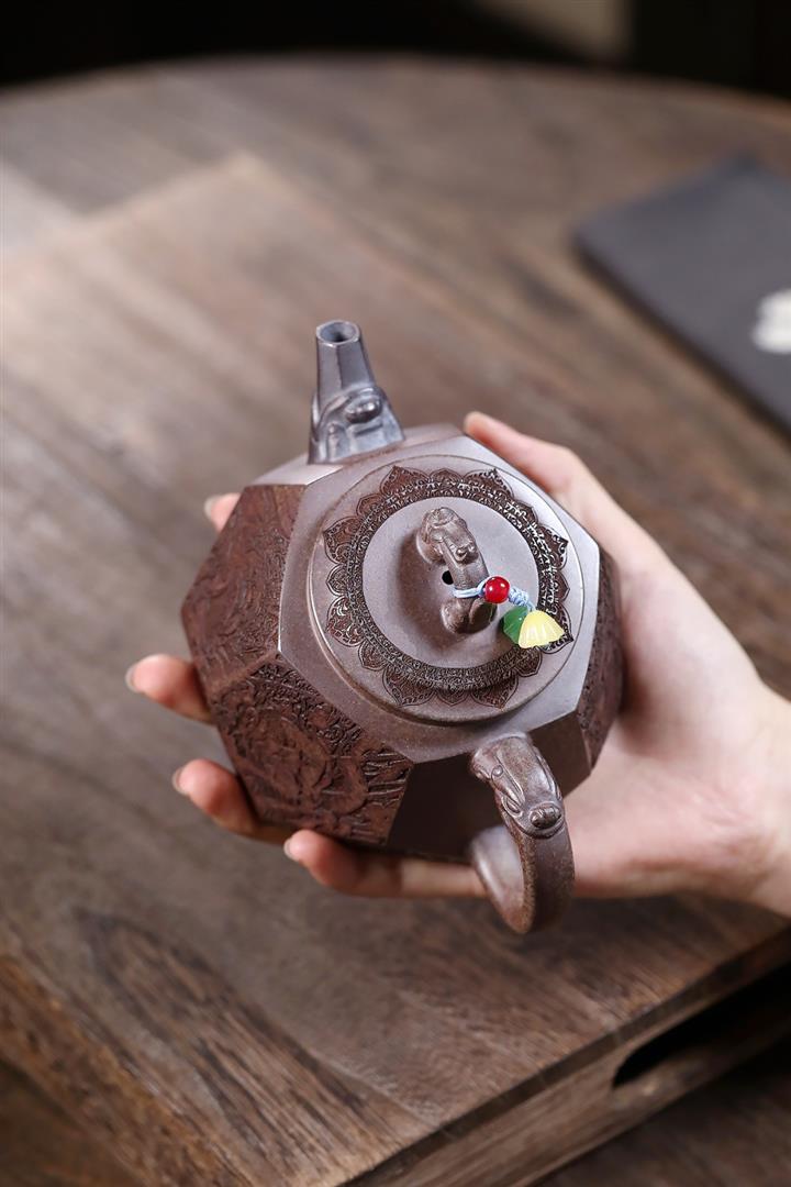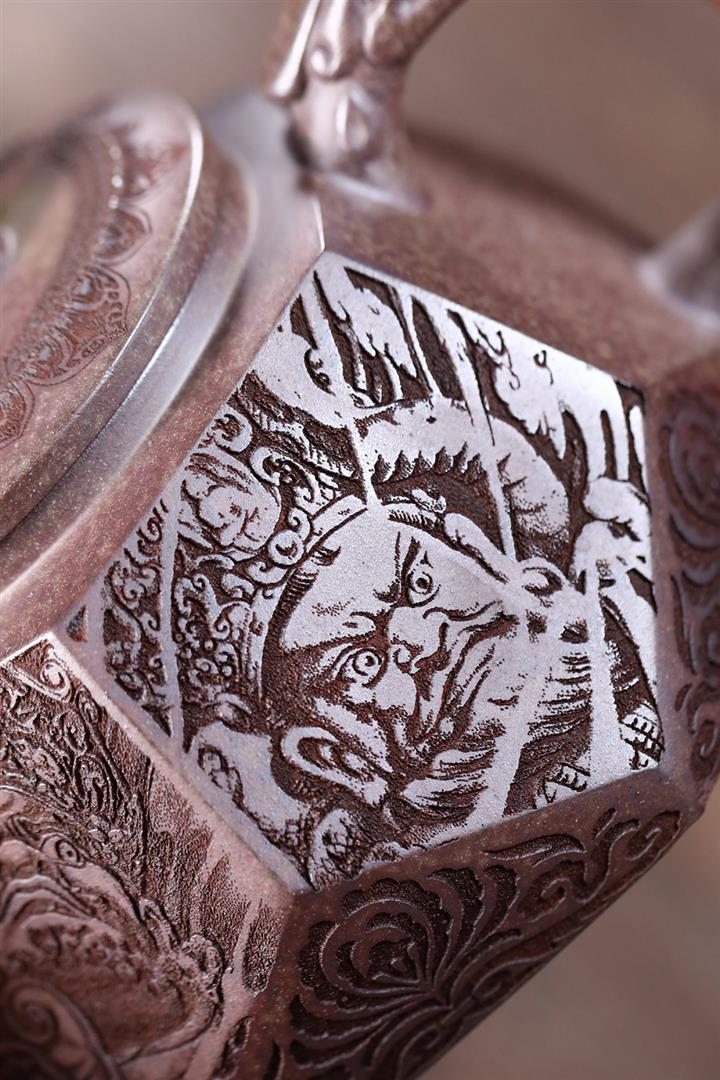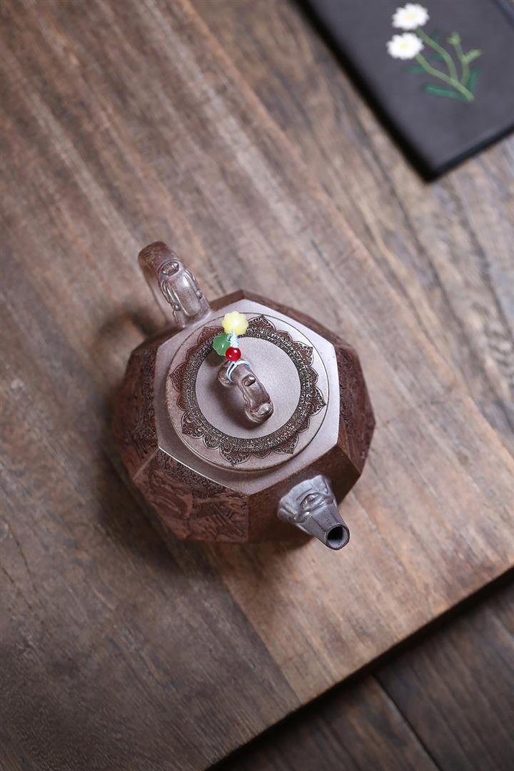 270cc原礦段泥柴燒六方宮燈手刻心經茶壺POT8756