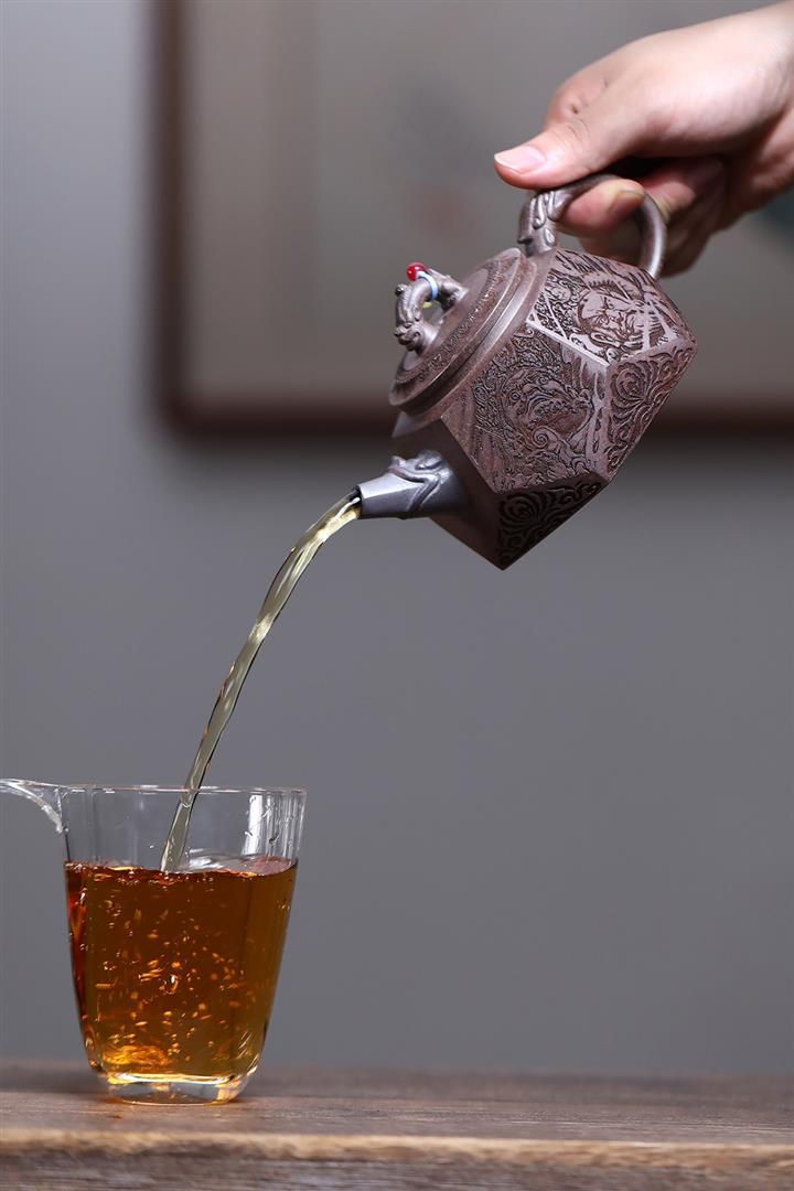 【泥料特點】砂土氣重,似淳實農民,日久使用,漸露鋒芒,養成變化,溫潤莊重。紫砂是壹種雙重氣孔結構的多孔性材質,氣孔微細,密度高。用紫砂壺沏茶,不失原味,且香不渙散,得茶之真香真味。紫砂使用越久,壺身色澤越發光亮照人,氣韻溫雅。紫砂壺長久使用器身會因撫摸擦拭,變得越發溫潤光澤。