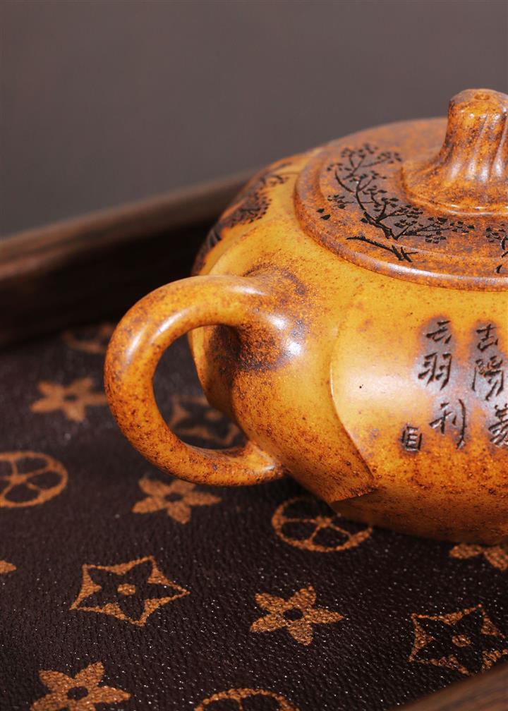 【作品介紹】此款壺形線條流暢,壺把,壺嘴,壺身壹氣呵成栩栩如生,是收藏把玩的好壺,泥料色澤古樸典雅,日久使用,漸露鋒芒,養成變化快,溫潤莊重,用其泡茶,使用的年代久,壺身就溫潤,泡出來的茶湯也就醇郁芳馨。