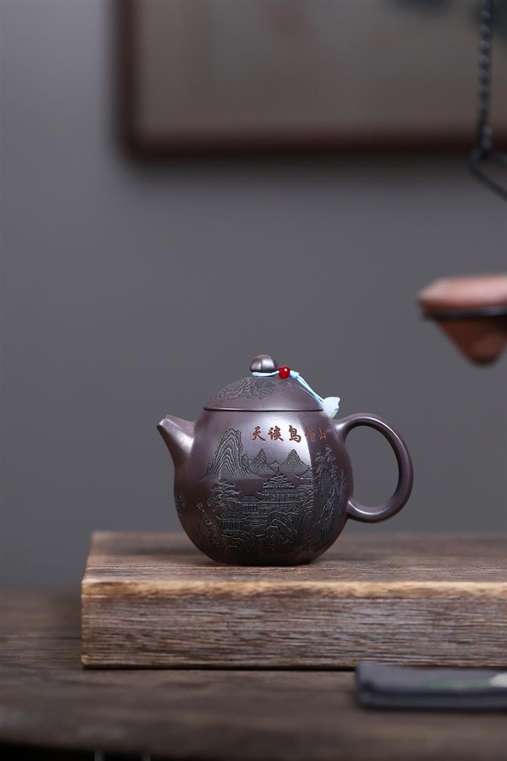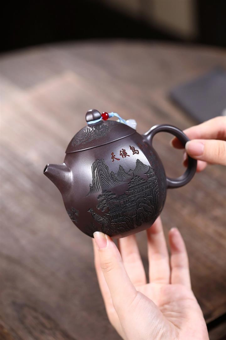 【作品介紹】此款壺形線條流暢,壺把,壺嘴,壺身壹氣呵成栩栩如生,是收藏把玩的好壺,泥料色澤古樸典雅,日久使用,漸露鋒芒,養成變化快,溫潤莊重,用其泡茶,使用的年代久,壺身就溫潤,泡出來的茶湯也就醇郁芳馨。