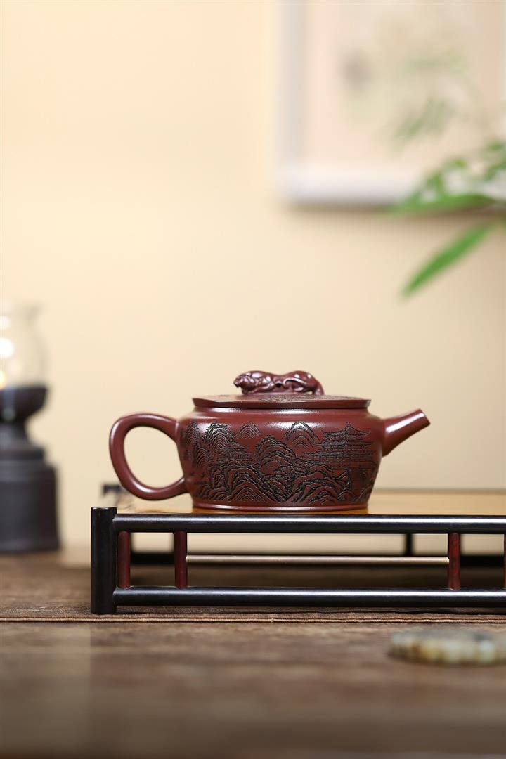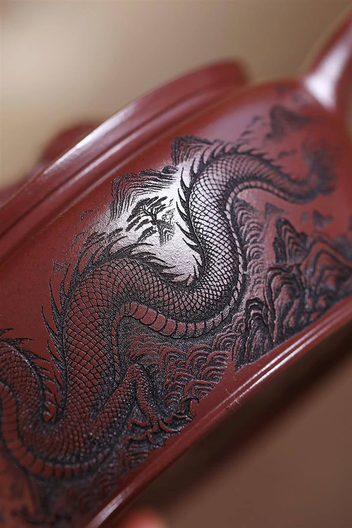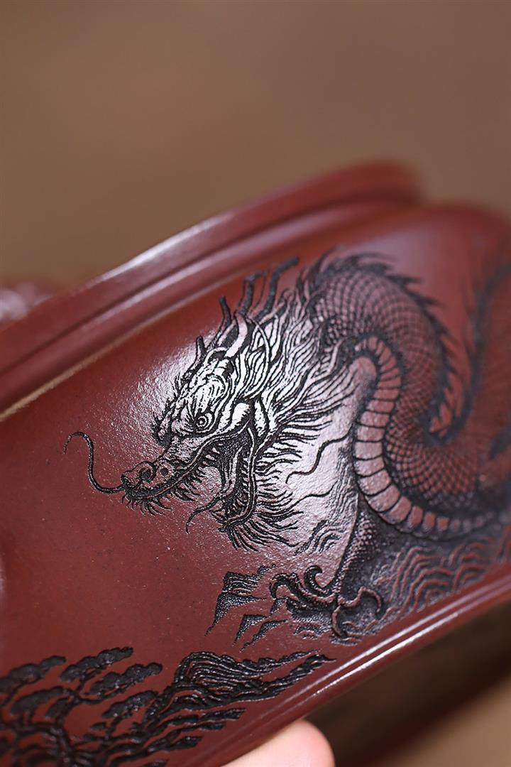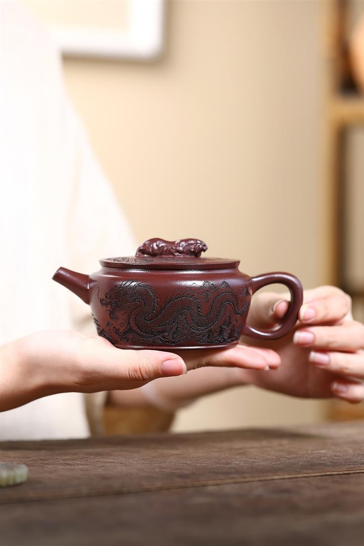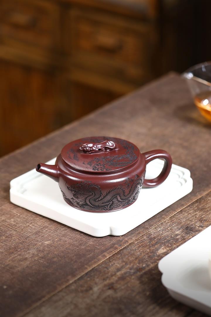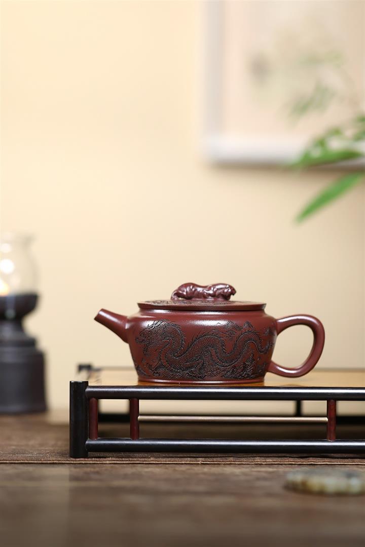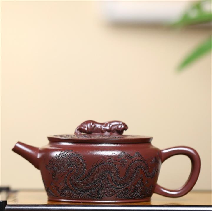 210cc原礦石紅泥虎踞龍盤漢瓦茶壺POT8246