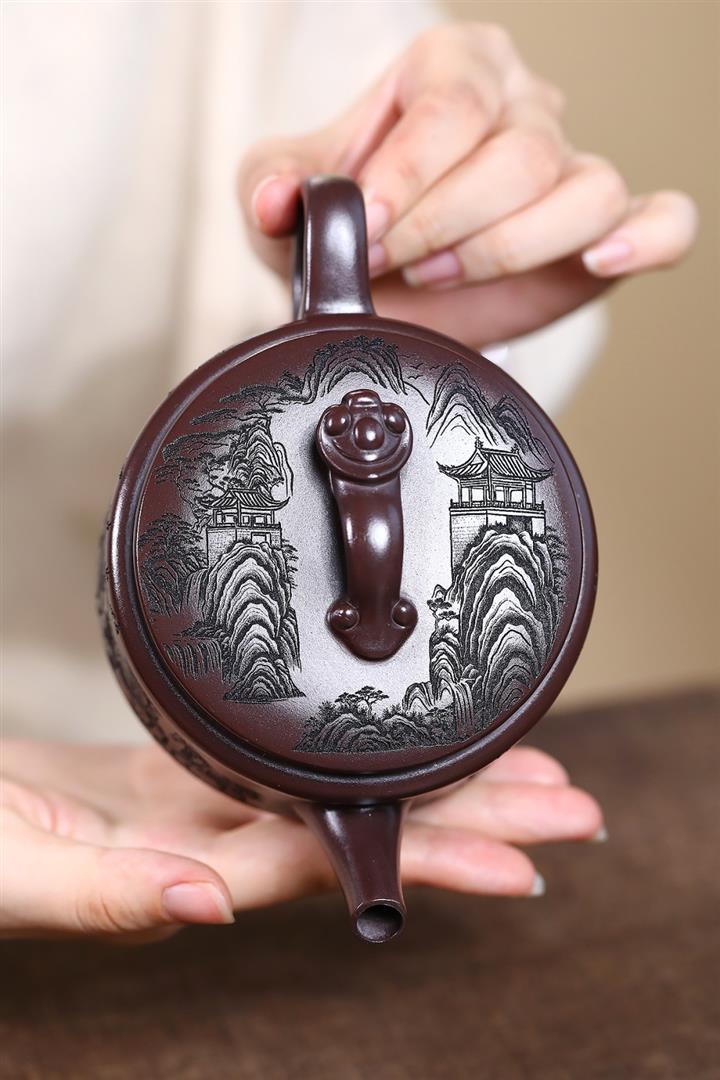 【作品介紹】此款壺形線條流暢,壺把,壺嘴,壺身壹氣呵成栩栩如生,是收藏把玩的好壺,泥料色澤古樸典雅,日久使用,漸露鋒芒,養成變化快,溫潤莊重,用其泡茶,使用的年代久,壺身就溫潤,泡出來的茶湯也就醇郁芳馨。