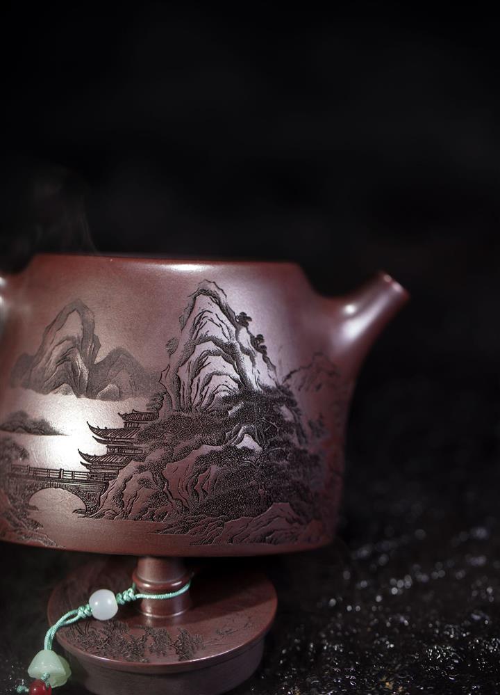 六方宮燈原礦龍骨金砂手刻紫砂壺工堂pot3868