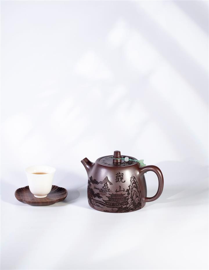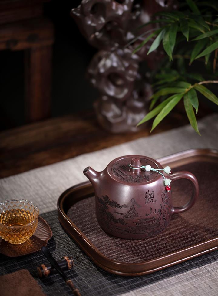 【泥料特點】砂土氣重,似淳實農民,日久使用,漸露鋒芒,養成變化,溫潤莊重。紫砂是壹種雙重氣孔結構的多孔性材質,氣孔微細,密度高。用紫砂壺沏茶,不失原味,且香不渙散,得茶之真香真味。紫砂使用越久,壺身色澤越發光亮照人,氣韻溫雅。紫砂壺長久使用器身會因撫摸擦拭,變得越發溫潤光澤。