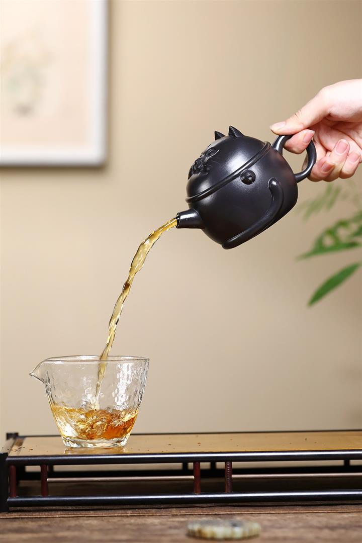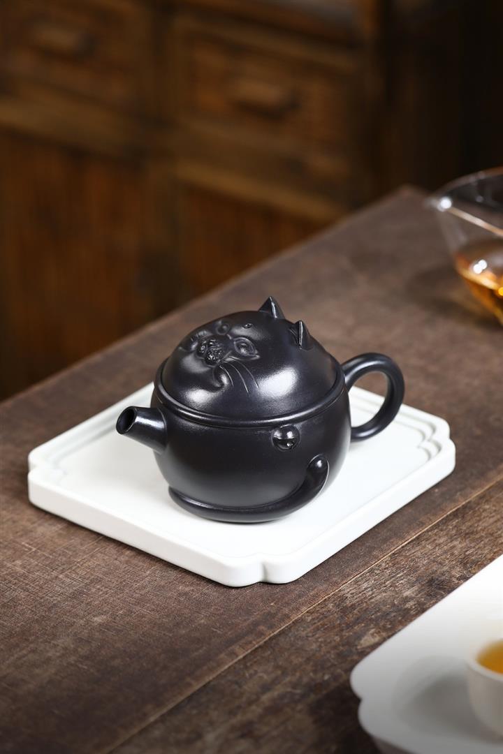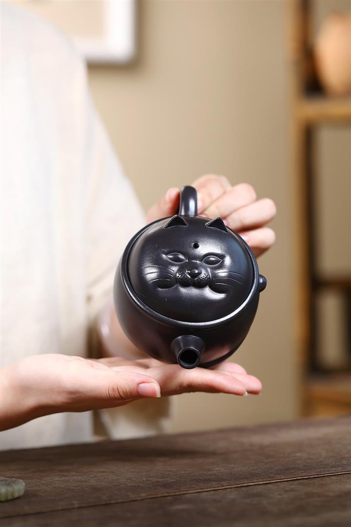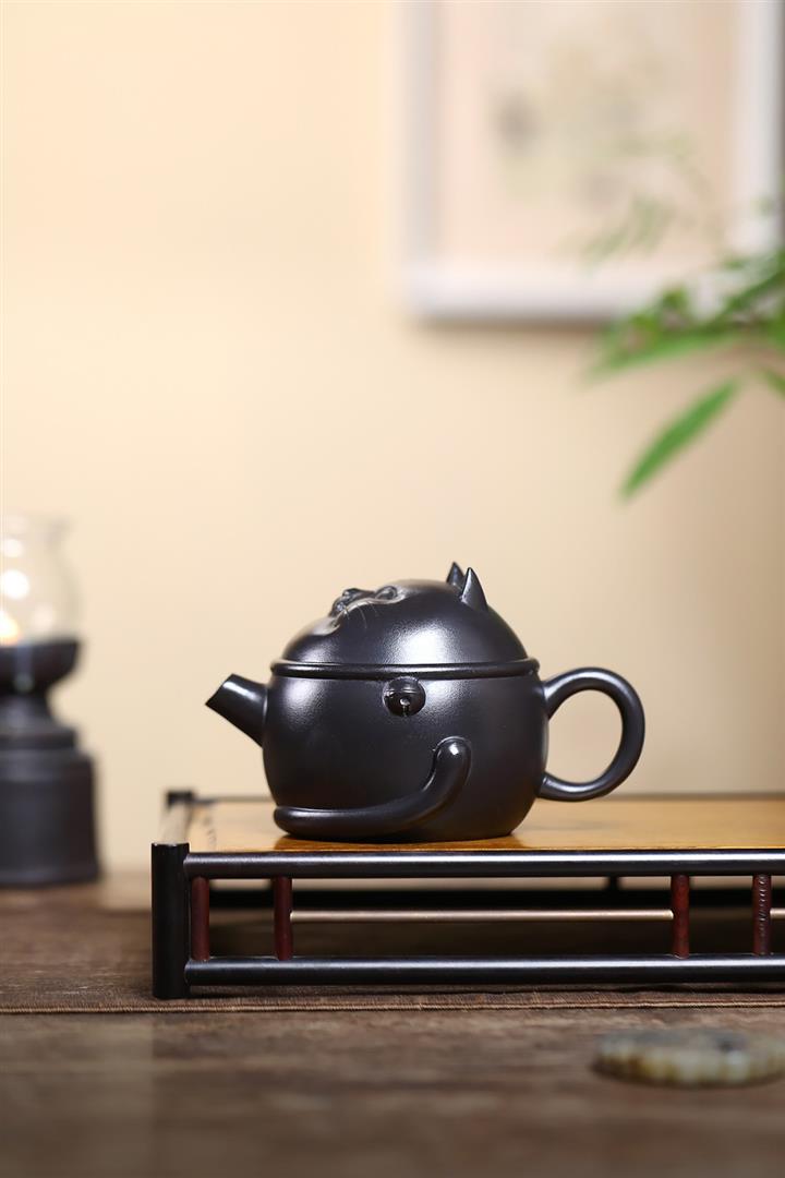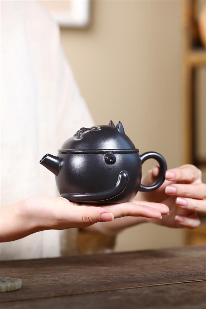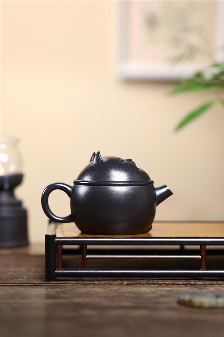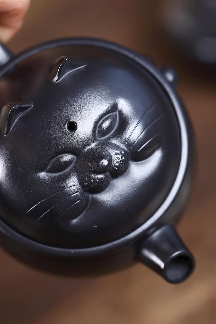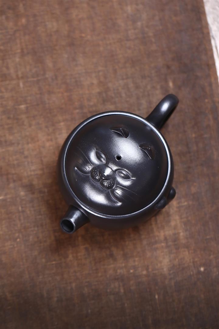 原礦黑料灑金萌兔紫砂壺POT5351