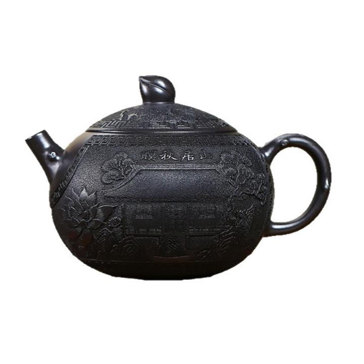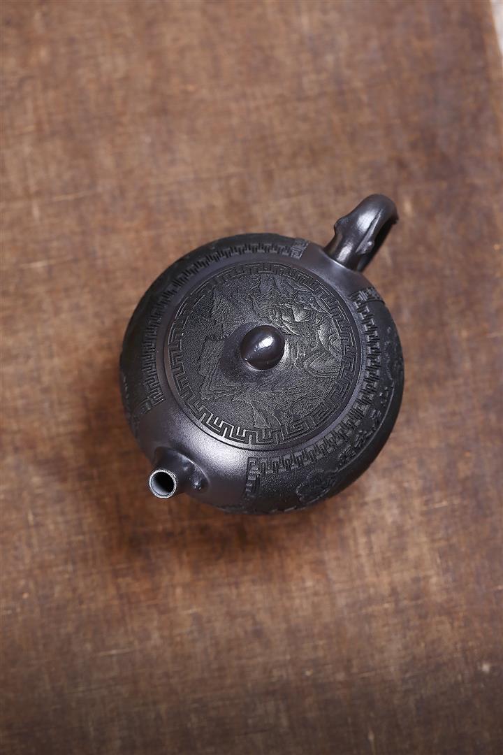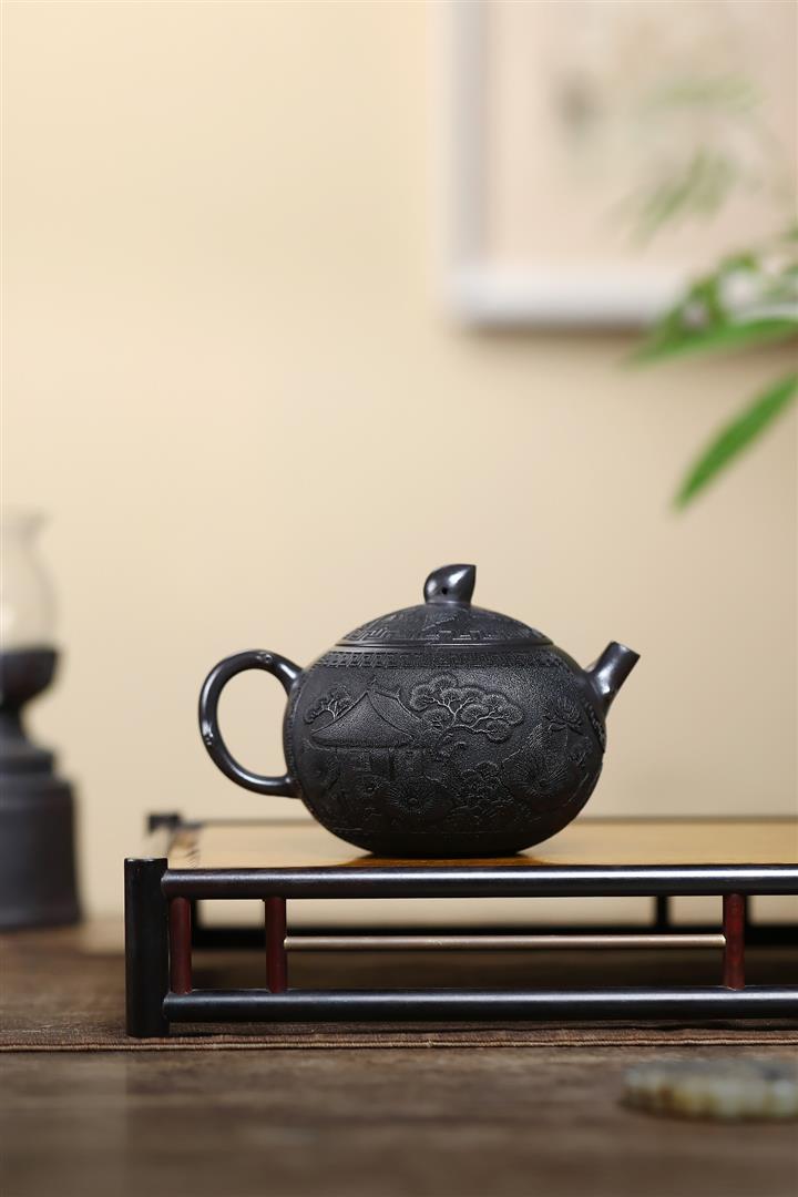 墨綠泥九齡君子蘭幾何周盤茶壺POT6518
