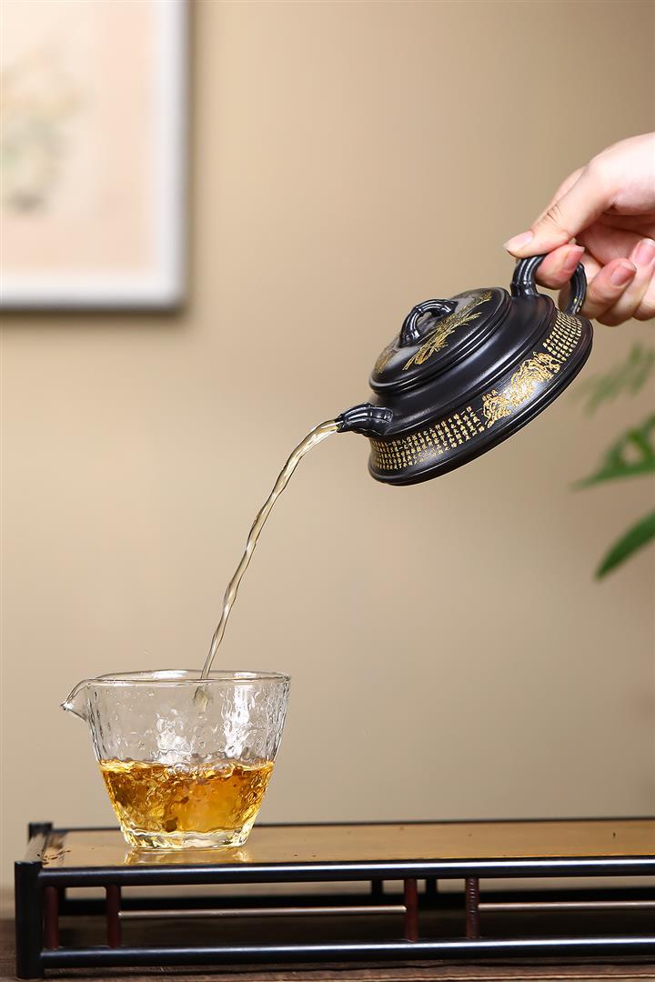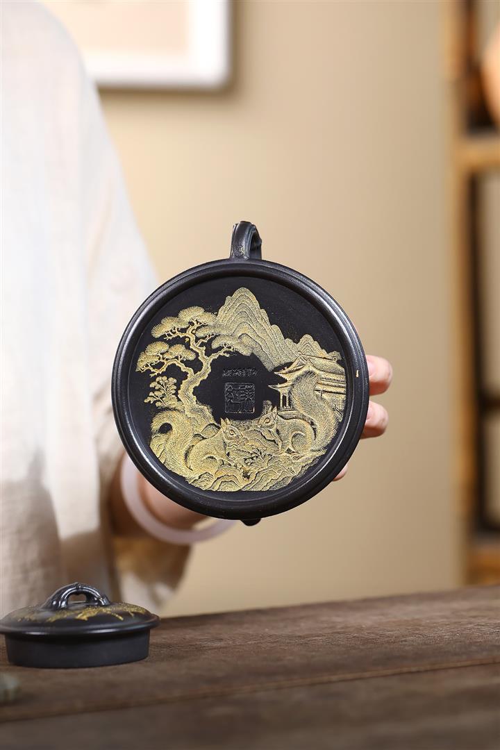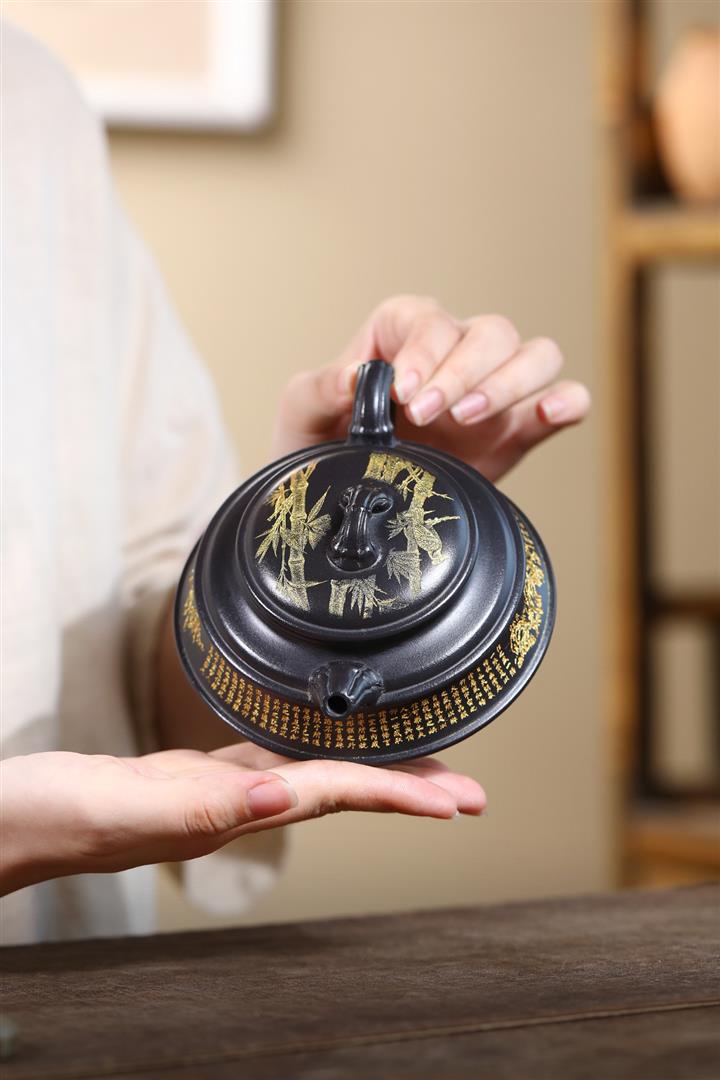 80cc原礦黃金段泥竹影唐羽側把茶壺POT8759