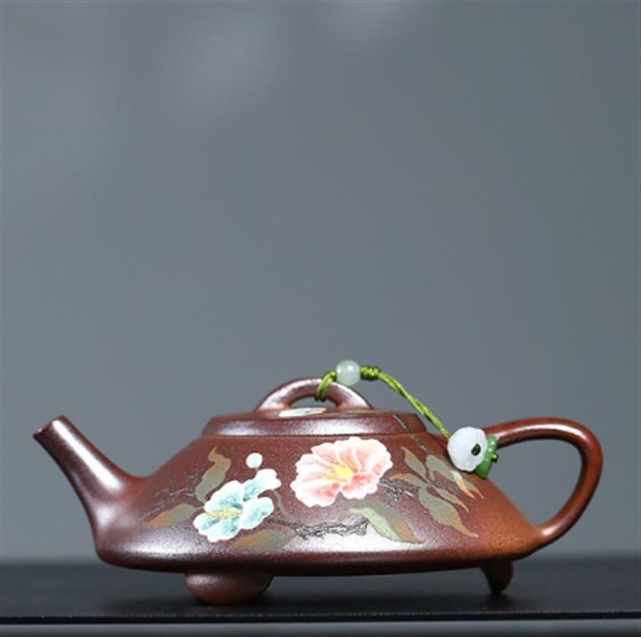 【泥料特點】砂土氣重,似淳實農民,日久使用,漸露鋒芒,養成變化,溫潤莊重。紫砂是壹種雙重氣孔結構的多孔性材質,氣孔微細,密度高。用紫砂壺沏茶,不失原味,且香不渙散,得茶之真香真味。紫砂使用越久,壺身色澤越發光亮照人,氣韻溫雅。紫砂壺長久使用器身會因撫摸擦拭,變得越發溫潤光澤。