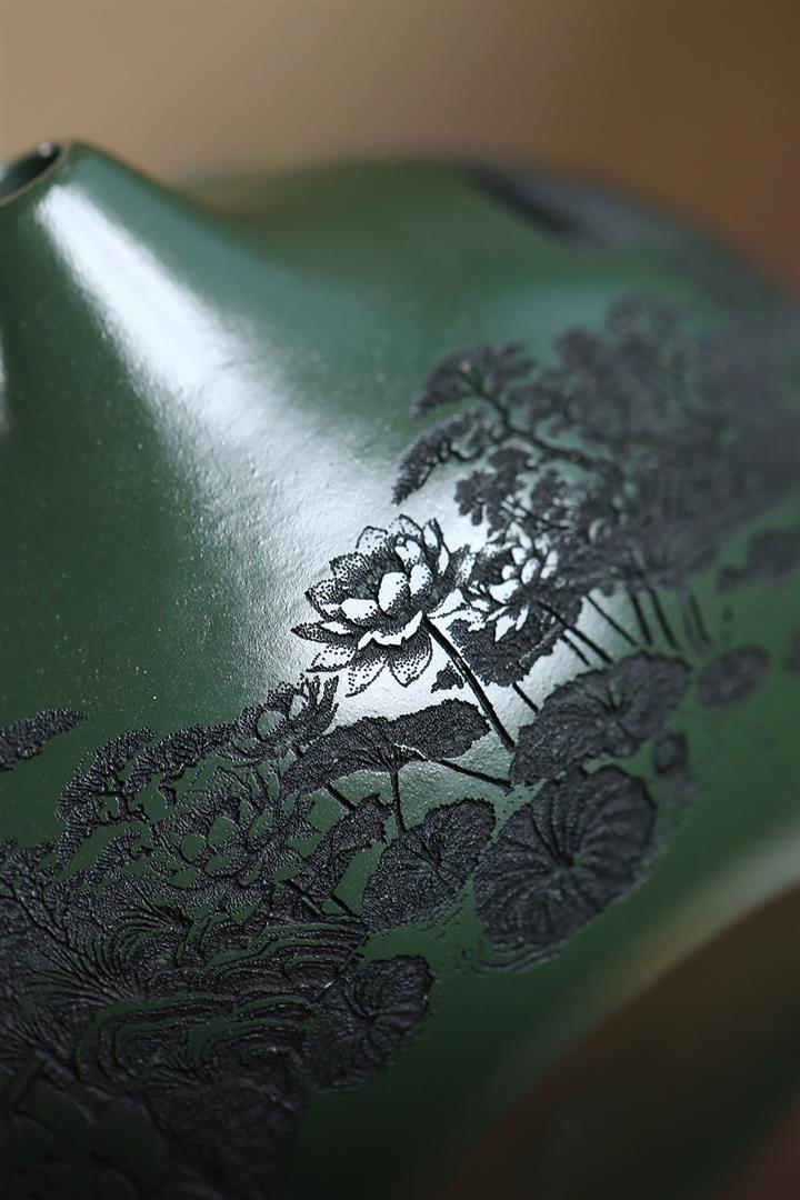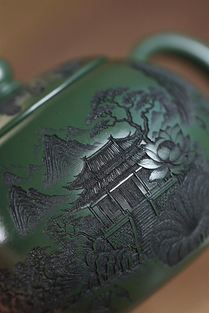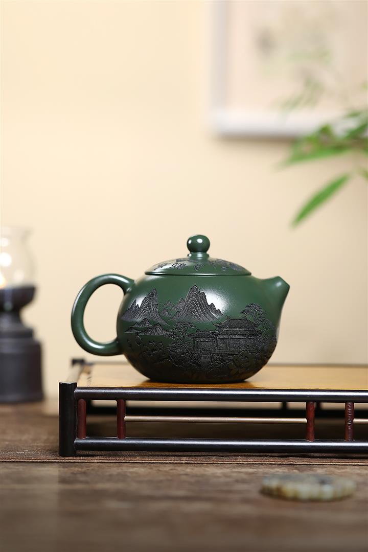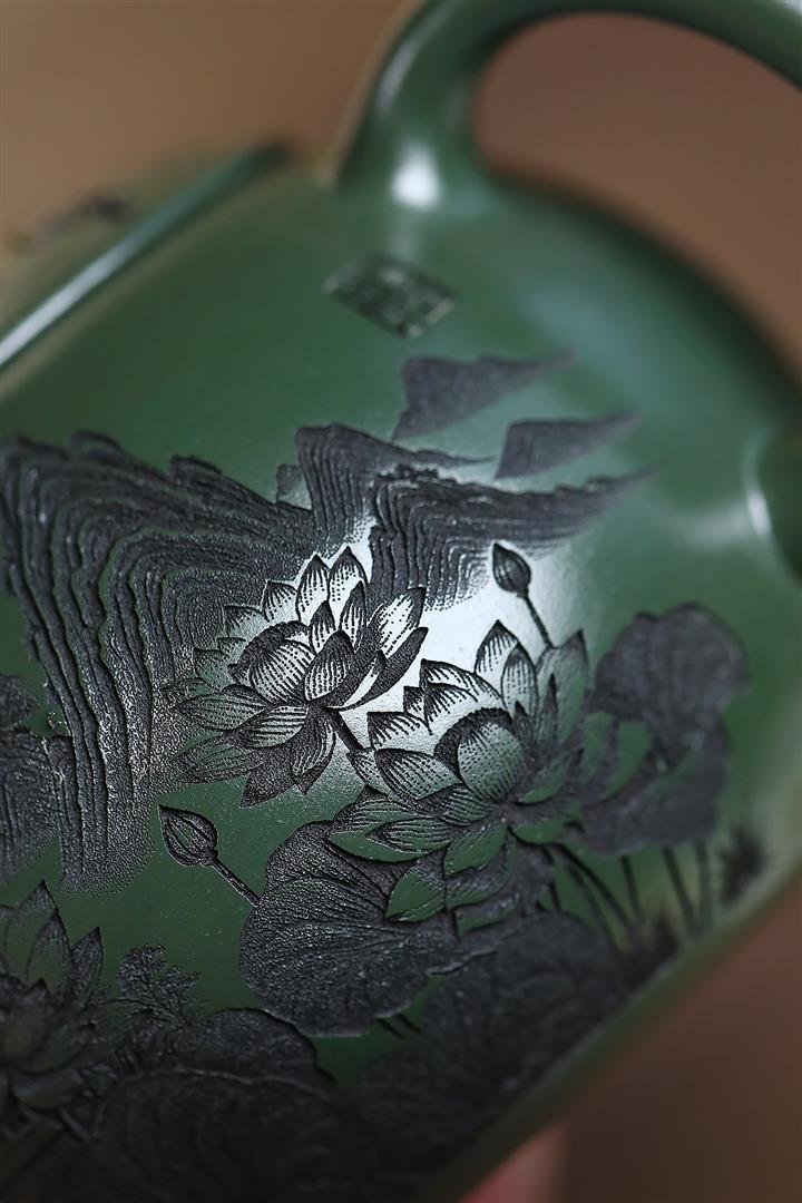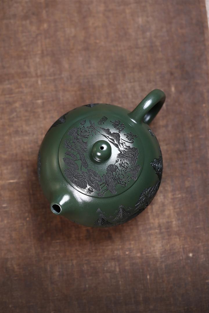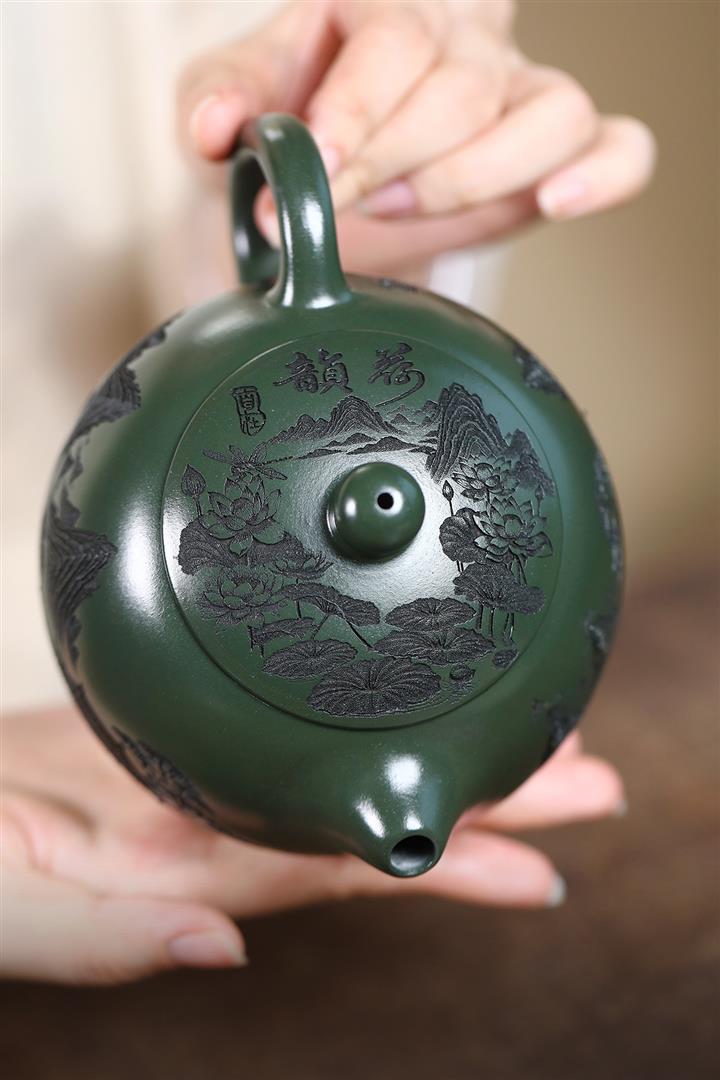500cc原礦翡翠綠泥荷韻西施茶壺POT8280