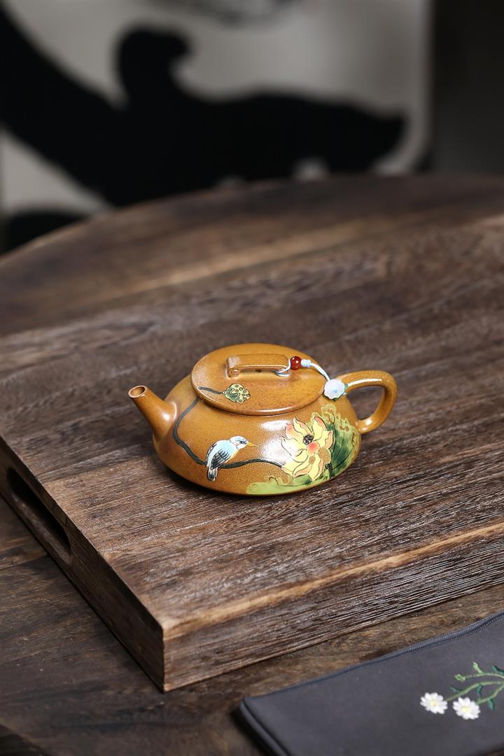 200cc原礦黃金段泥高溫柴燒荷趣韻瓢壺POT8321