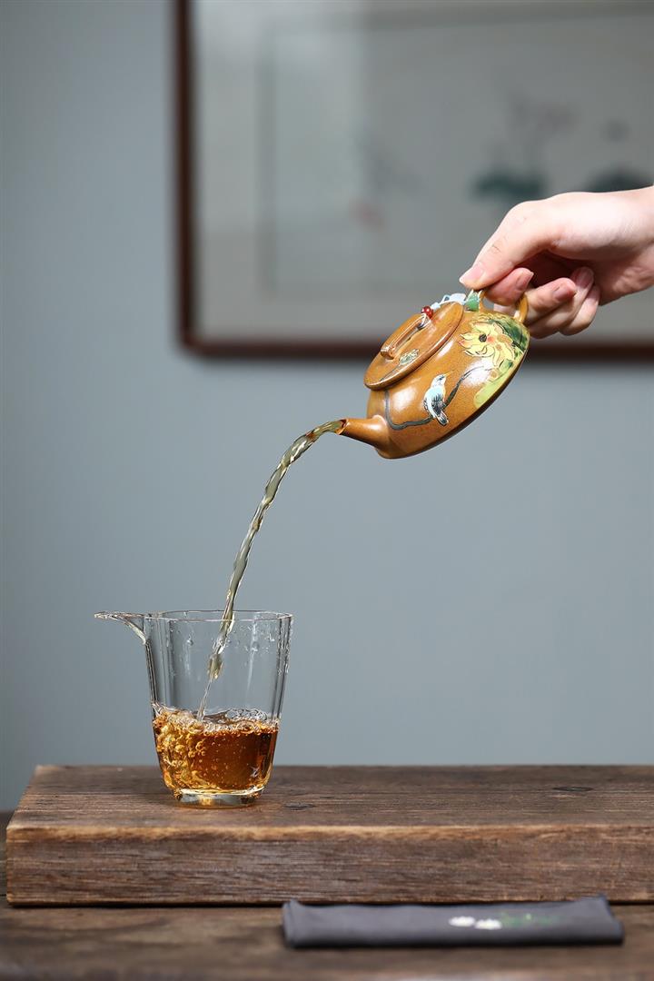 【泥料特點】砂土氣重,似淳實農民,日久使用,漸露鋒芒,養成變化,溫潤莊重。紫砂是壹種雙重氣孔結構的多孔性材質,氣孔微細,密度高。用紫砂壺沏茶,不失原味,且香不渙散,得茶之真香真味。紫砂使用越久,壺身色澤越發光亮照人,氣韻溫雅。紫砂壺長久使用器身會因撫摸擦拭,變得越發溫潤光澤。