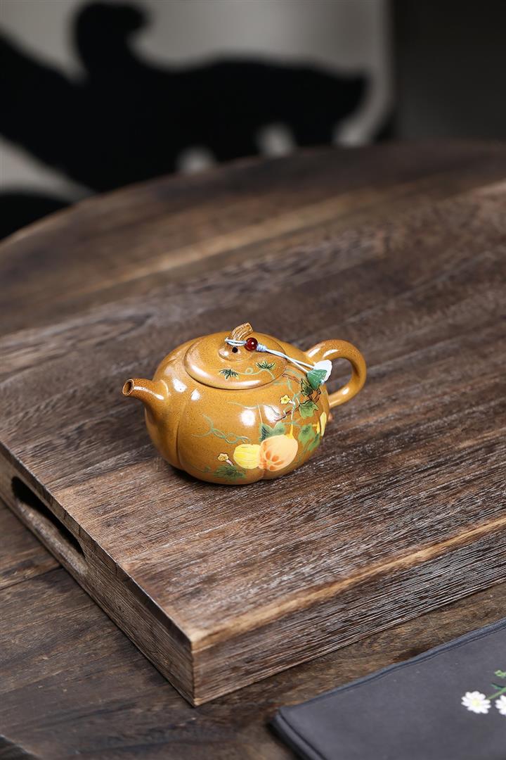 200cc原礦黃金段泥高溫柴燒金瓜羨瑞茶壺POT8322