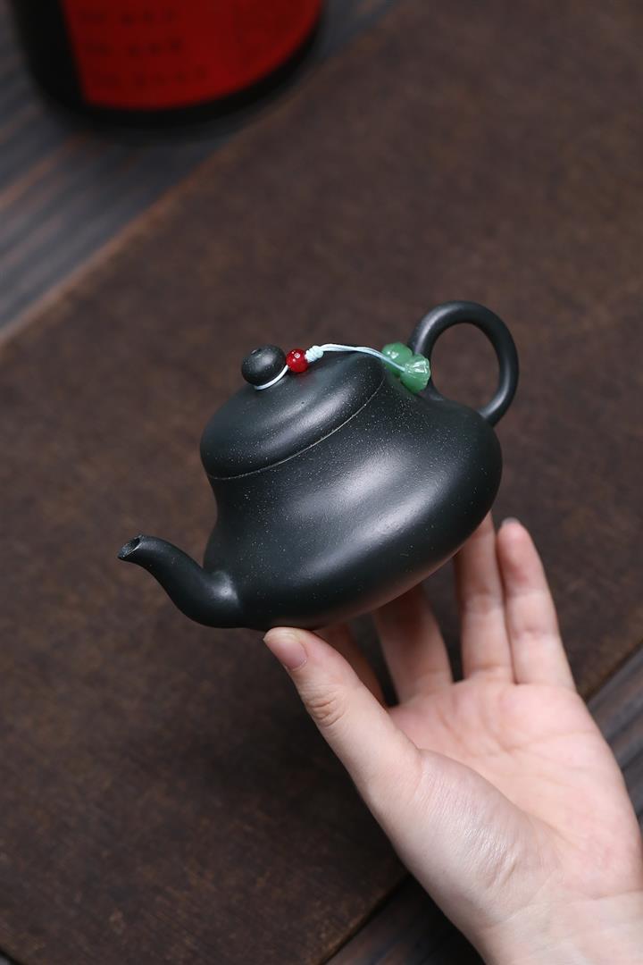 【作品介紹】此款壺形線條流暢,壺把,壺嘴,壺身壹氣呵成栩栩如生,是收藏把玩的好壺,泥料色澤古樸典雅,日久使用,漸露鋒芒,養成變化快,溫潤莊重,用其泡茶,使用的年代久,壺身就溫潤,泡出來的茶湯也就醇郁芳馨。