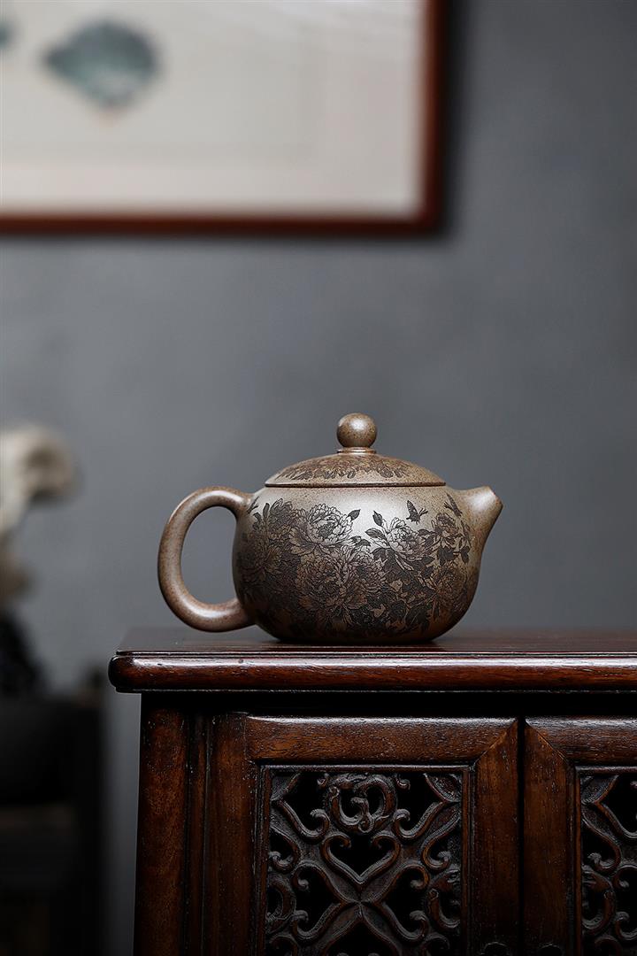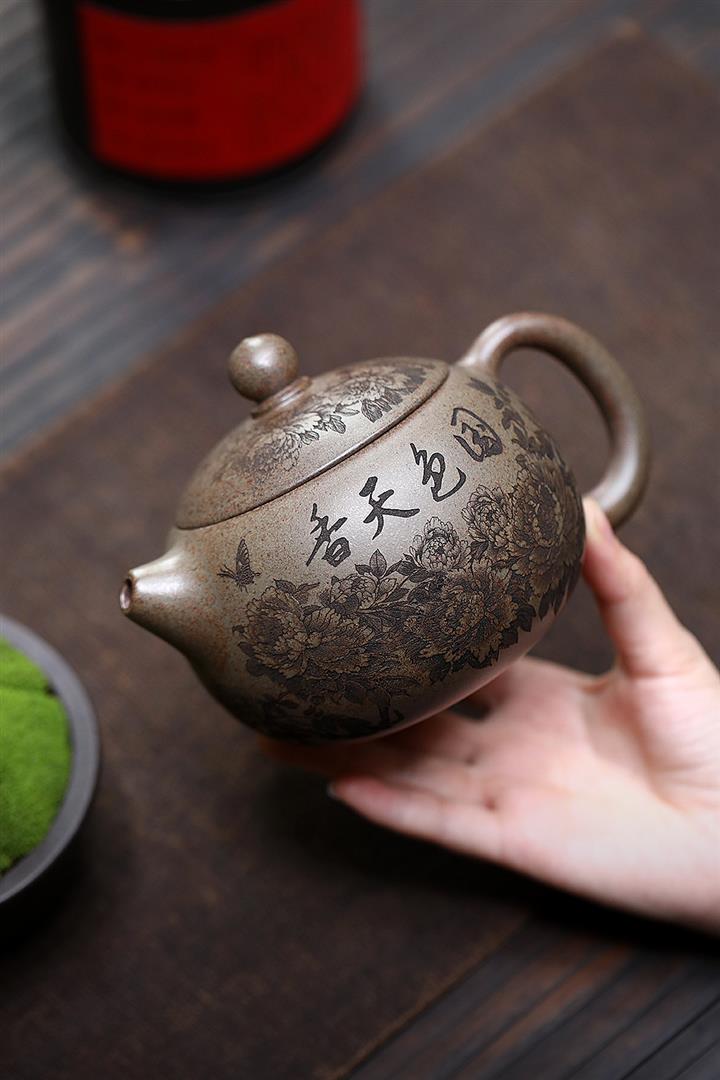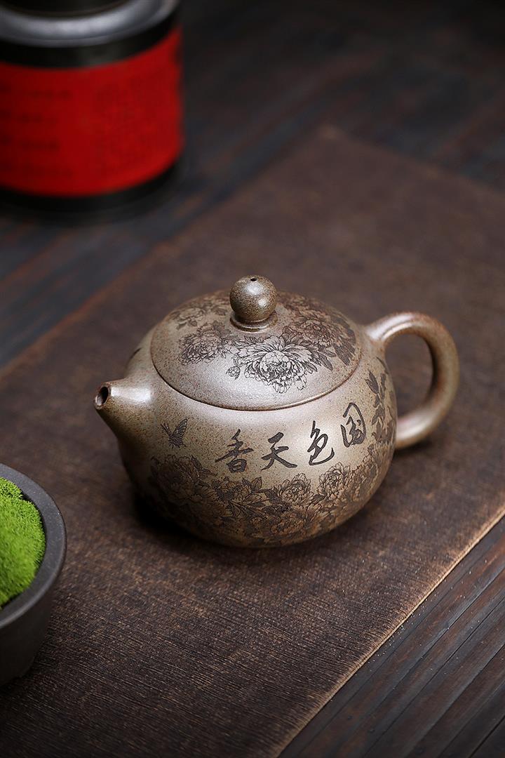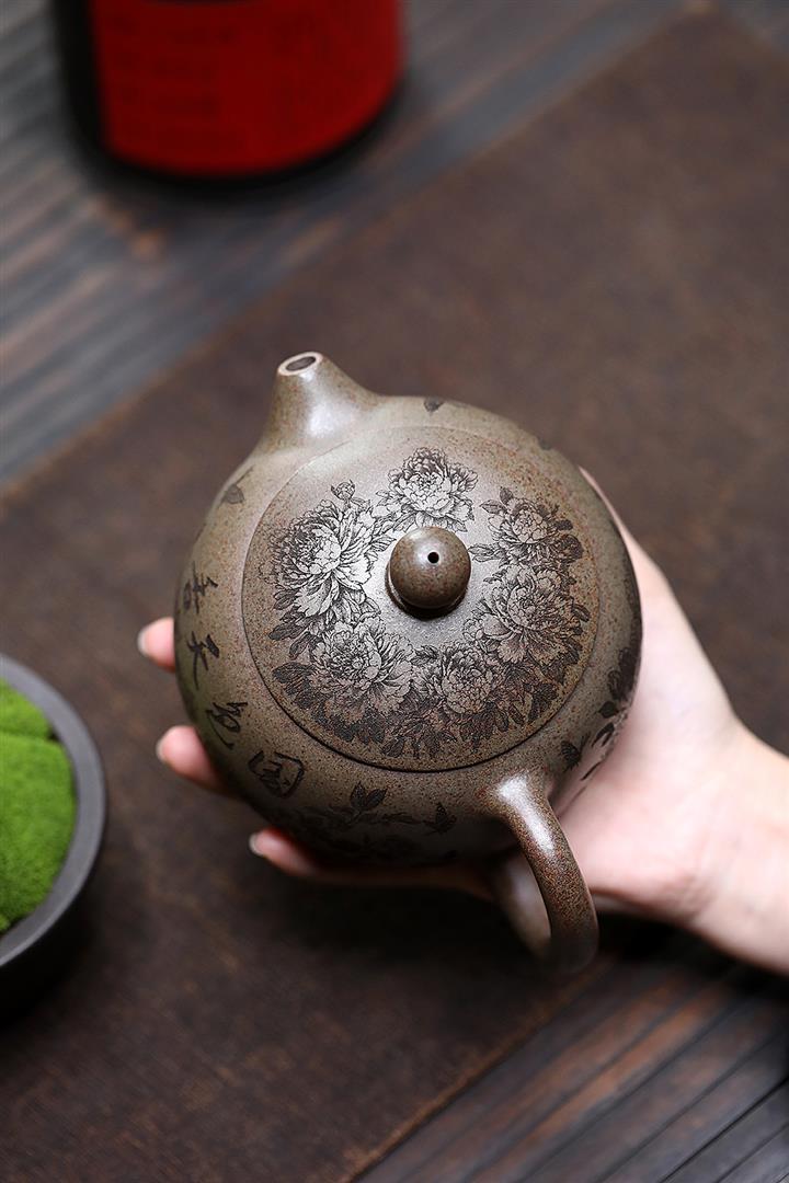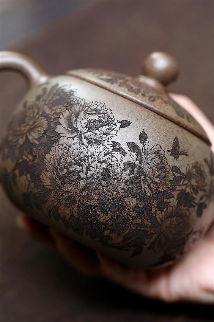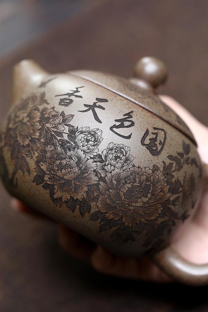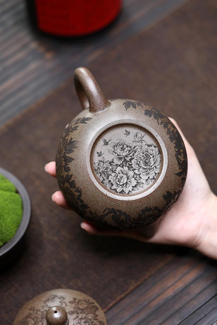原礦大紅袍牡丹大口漢瓦茶壺POT7832