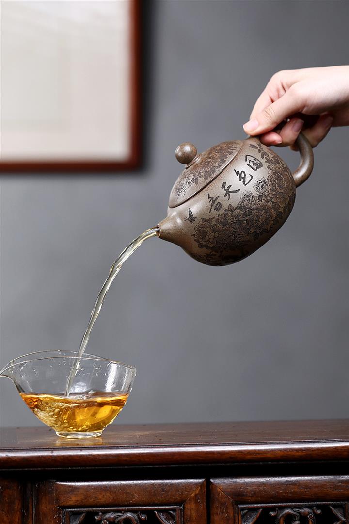 【作品介紹】此款壺形線條流暢,壺把,壺嘴,壺身壹氣呵成栩栩如生,是收藏把玩的好壺,泥料色澤古樸典雅,日久使用,漸露鋒芒,養成變化快,溫潤莊重,用其泡茶,使用的年代久,壺身就溫潤,泡出來的茶湯也就醇郁芳馨。