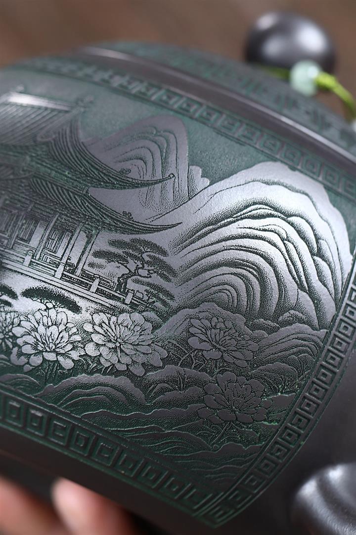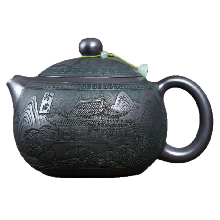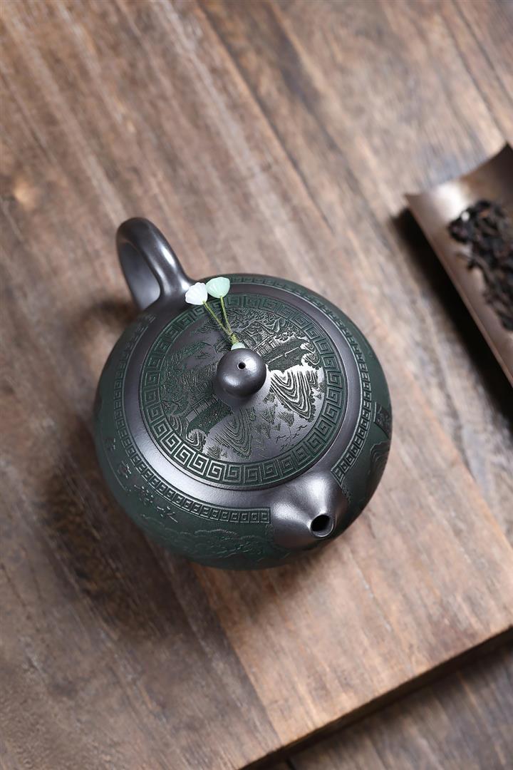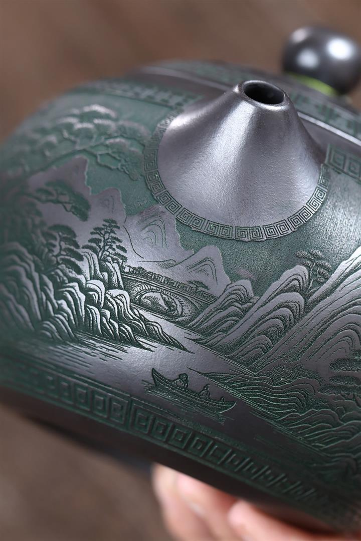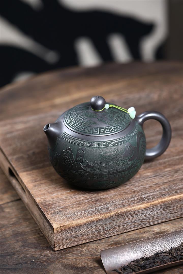 240cc原礦紫泥滿刻伏虎漢瓦茶壺POT8070