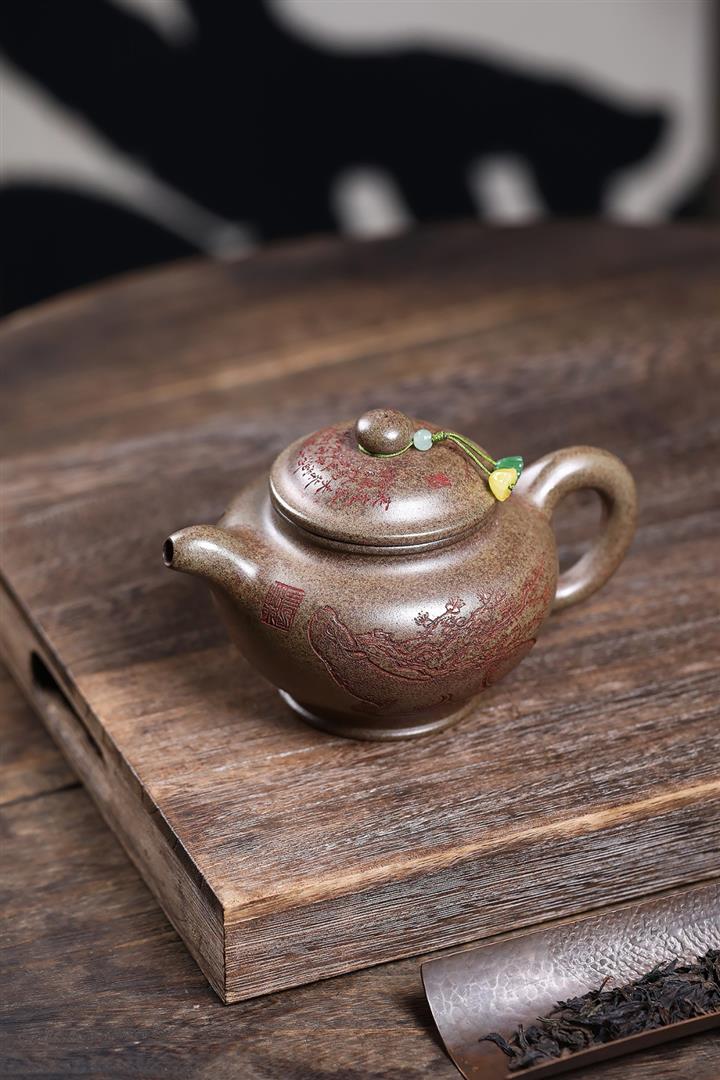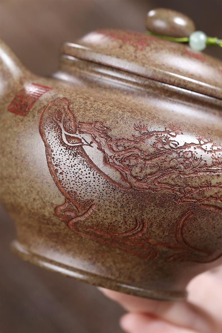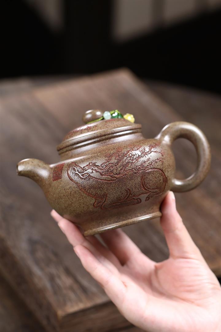 【作品介紹】此款壺形線條流暢,壺把,壺嘴,壺身壹氣呵成栩栩如生,是收藏把玩的好壺,泥料色澤古樸典雅,日久使用,漸露鋒芒,養成變化快,溫潤莊重,用其泡茶,使用的年代久,壺身就溫潤,泡出來的茶湯也就醇郁芳馨。