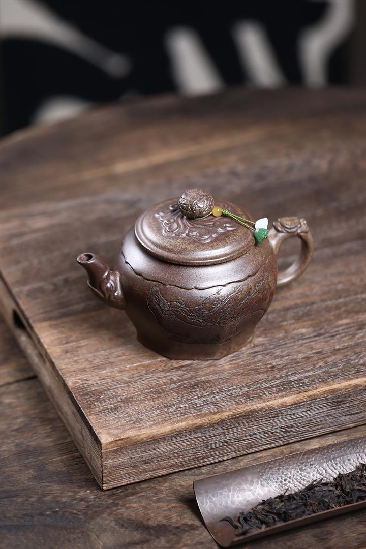 名家手工紫砂壺原礦天青泥如意龍茶壺茶具POT1106