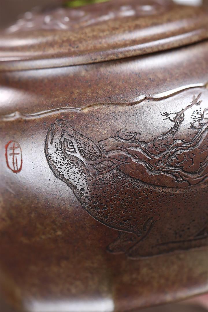 400cc原礦沈香泥柴燒龍吟鹿鳴宮燈壺POT8437