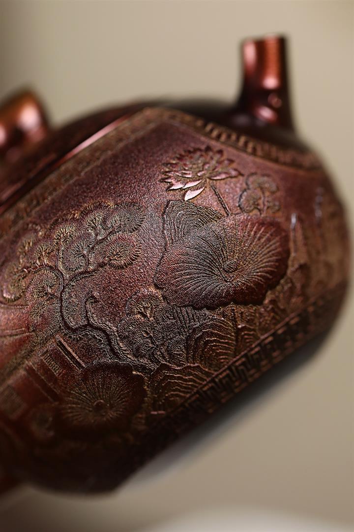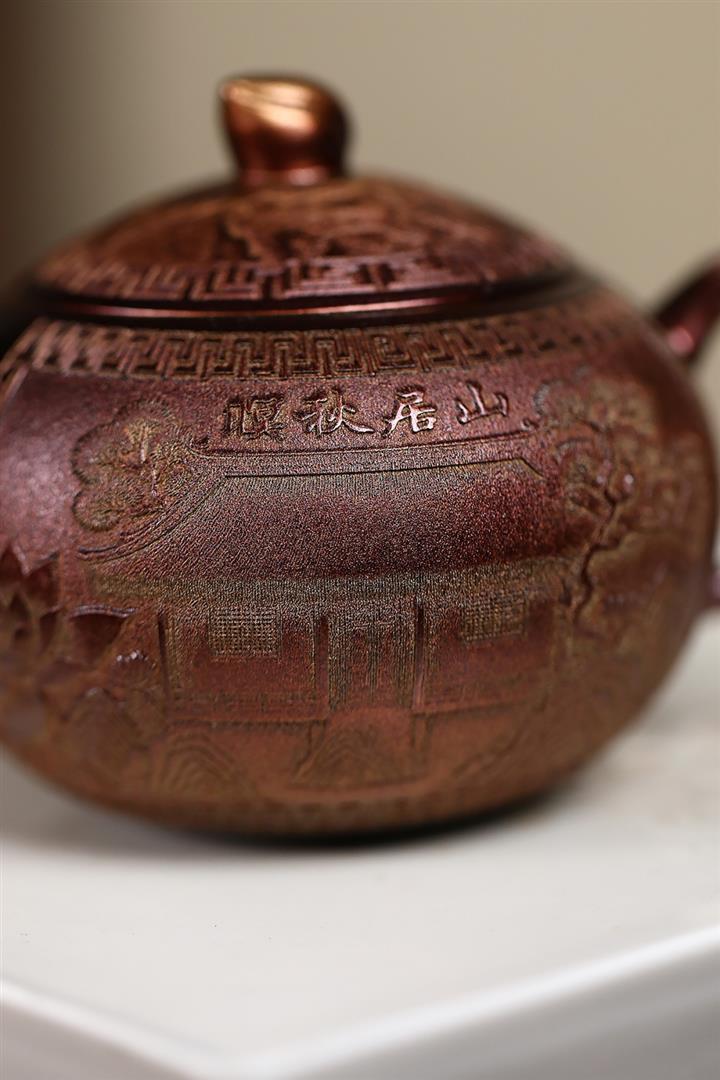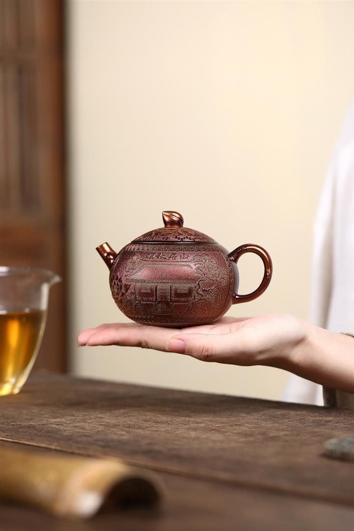 【作品介紹】此款壺形線條流暢,壺把,壺嘴,壺身壹氣呵成栩栩如生,是收藏把玩的好壺,泥料色澤古樸典雅,日久使用,漸露鋒芒,養成變化快,溫潤莊重,用其泡茶,使用的年代久,壺身就溫潤,泡出來的茶湯也就醇郁芳馨。