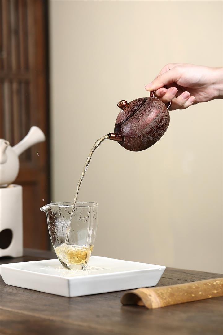 【泥料特點】砂土氣重,似淳實農民,日久使用,漸露鋒芒,養成變化,溫潤莊重。紫砂是壹種雙重氣孔結構的多孔性材質,氣孔微細,密度高。用紫砂壺沏茶,不失原味,且香不渙散,得茶之真香真味。紫砂使用越久,壺身色澤越發光亮照人,氣韻溫雅。紫砂壺長久使用器身會因撫摸擦拭,變得越發溫潤光澤。